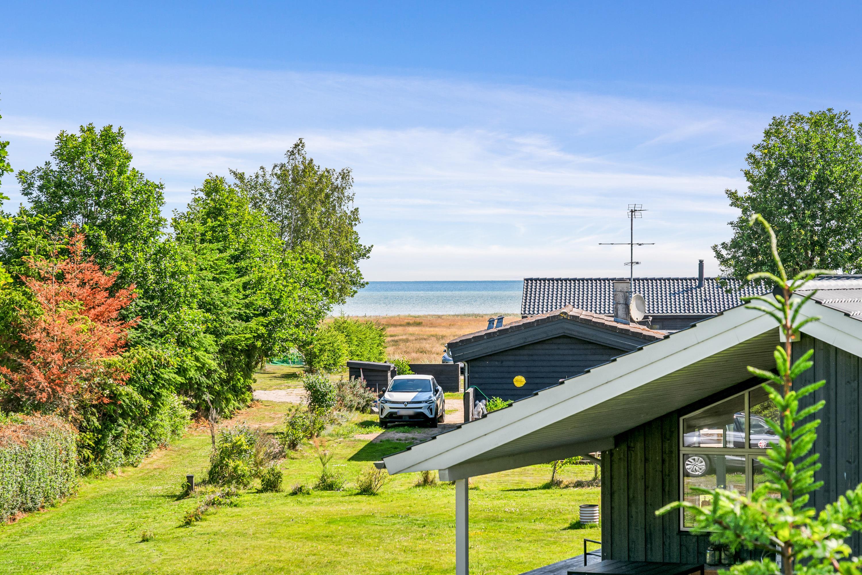 Dette store, flotte og gennemført renoverede bjælkehus er beliggende blot 150 meter fra den yderst børnevenlige Sjørup Strand nord for Fjellerup. Huset ligger på dejlig, opvokset naturgrund og er omgivet af stor fliseterrasse med havemøbler, liggestole, parasol og grill. Desuden er der en mindre, overdækket træterrasse med udgang fra spisestue/køkken, stor, skøn havestue med panoramavinduer samt altan på 1. sal med udgang fra soveværelse. Det perfekte hus til en vellykket familieferie.