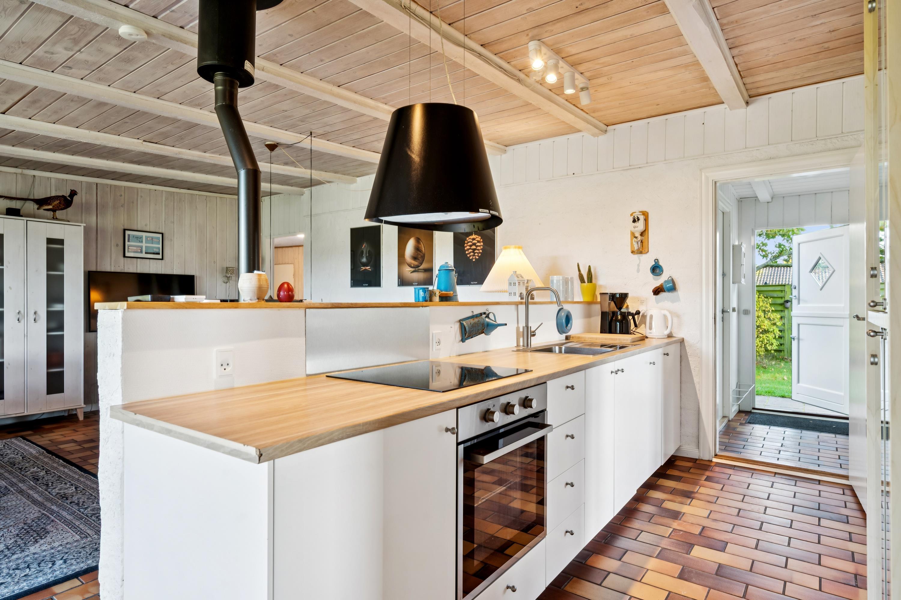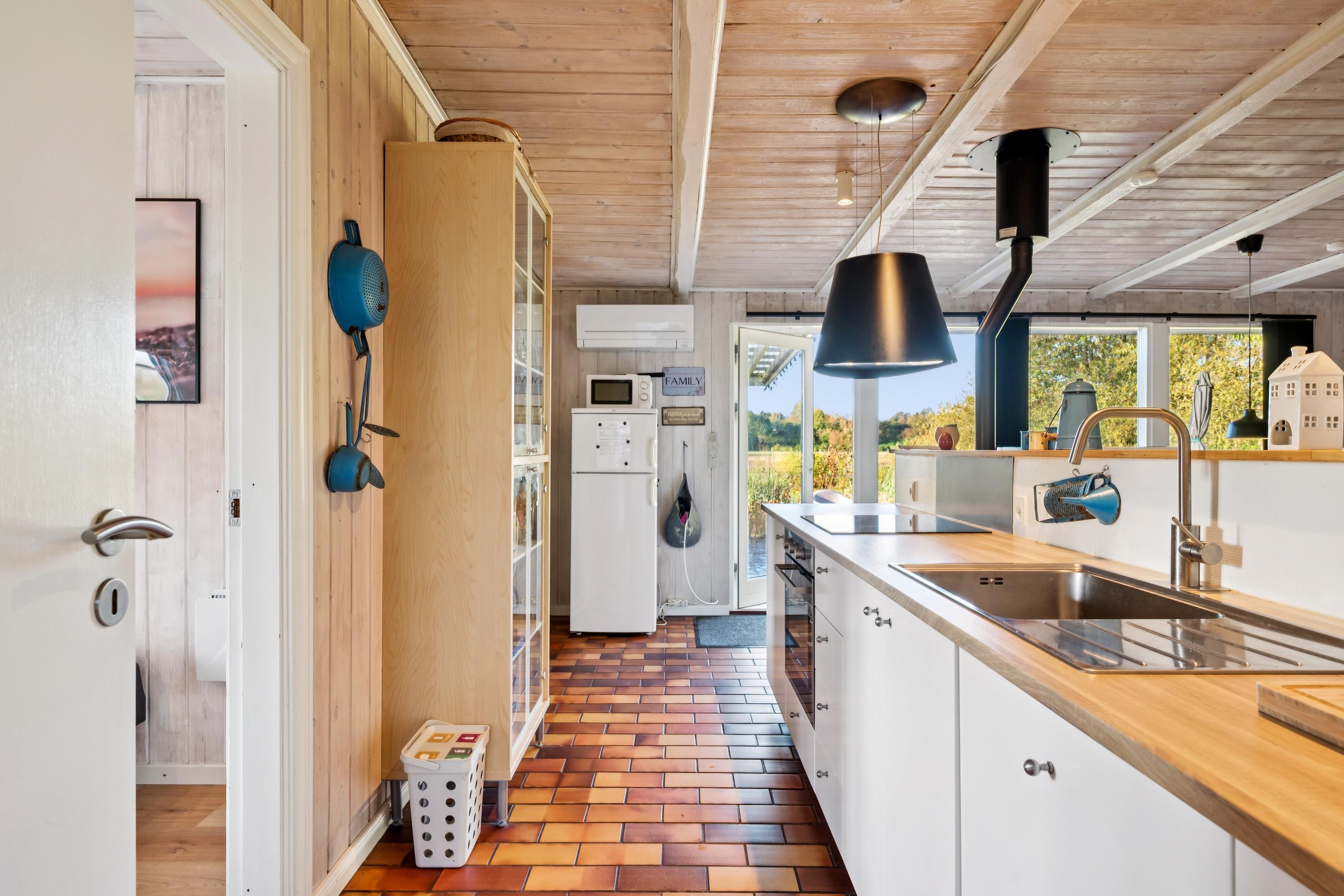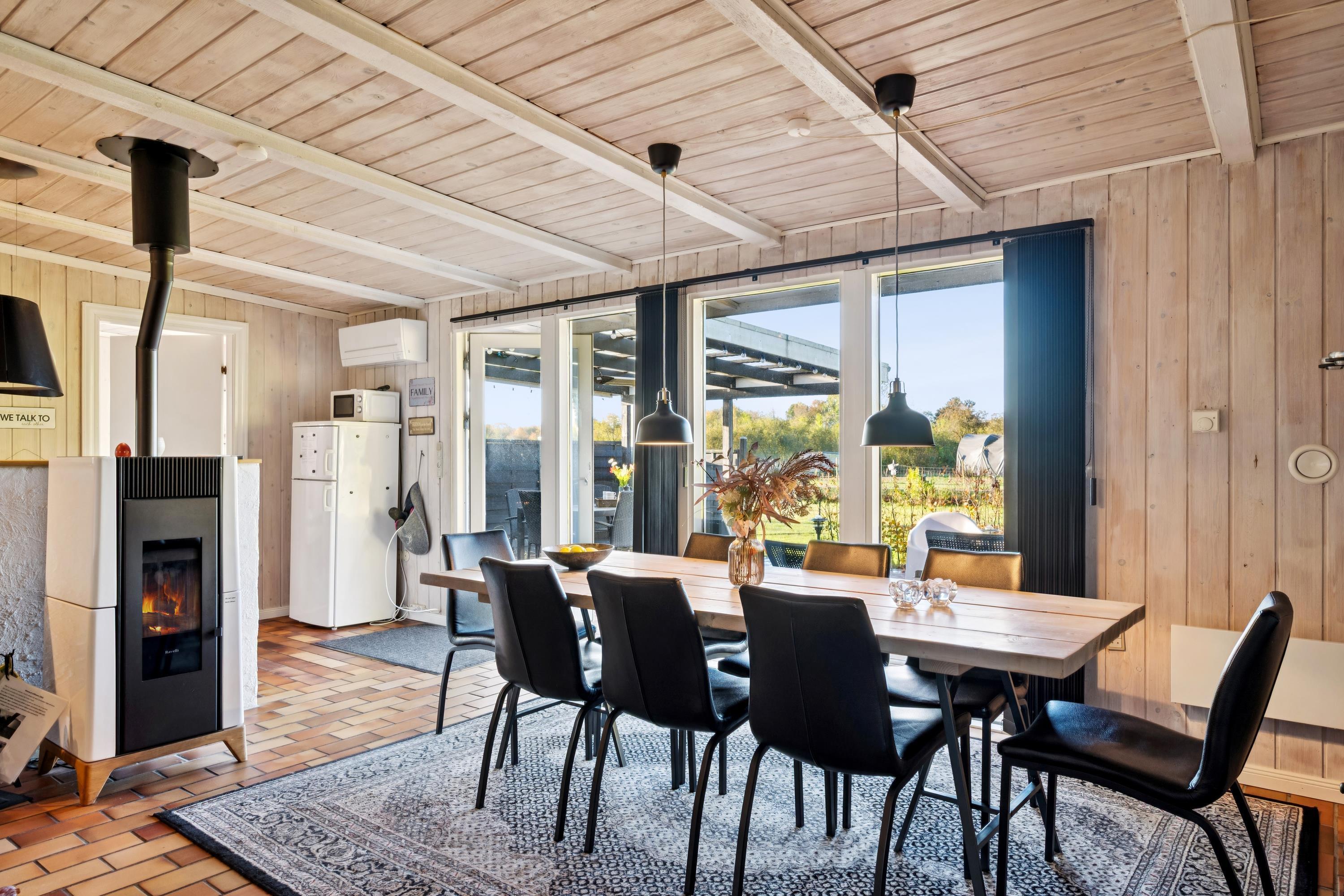I den smukke natur ved St. Sjørup finder man dette hyggelige sommerhus. Her finder man en lys og hyggelig indrettet stue med b.la. brændeovn og varmepumpe. I forbindelse med stuen finder man det gode og funktionelle køkken med b.la. opvaskemaskine. Fra køkkenafdelingen er der direkte udgang til en skøn overdækket terrasse med havemøbler og grill. Rummeligt badeværelse med bruseniche og hvor der er adgang til både vaskemaskine og tørretumbler. Husets otte sovepladser finder man i fire værelser, alle med dobbeltsenge. Til de aktive feriegæster er der et separat rum med airhockey, bordfodbold, Wii og Xbox. Perfekt til en regnvejrsdag indendørs. Til de små feriegæster er der en høj barnestol og en barneseng. Huset er beliggende på en stor indhegnet grund og med stor græsplæne- velegnet til leg og boldspil hvor man også finder et fodboldmål. Der findes også en hyggelig bålplads, hvor man en dejlig sommeraften kan sidde og lave snobrød og skumfiduser. Til lystfiskeren findes en udendørs renseplads