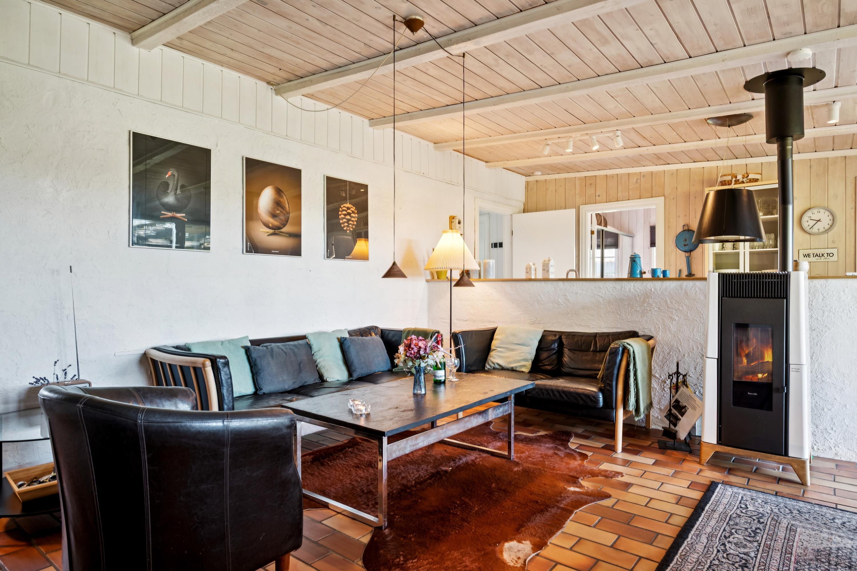 Hyggeligt sommerhus ved St. Sjørup med brændeovn, spilrum og stor indhegnet grund med bålplads nær strand og natur.