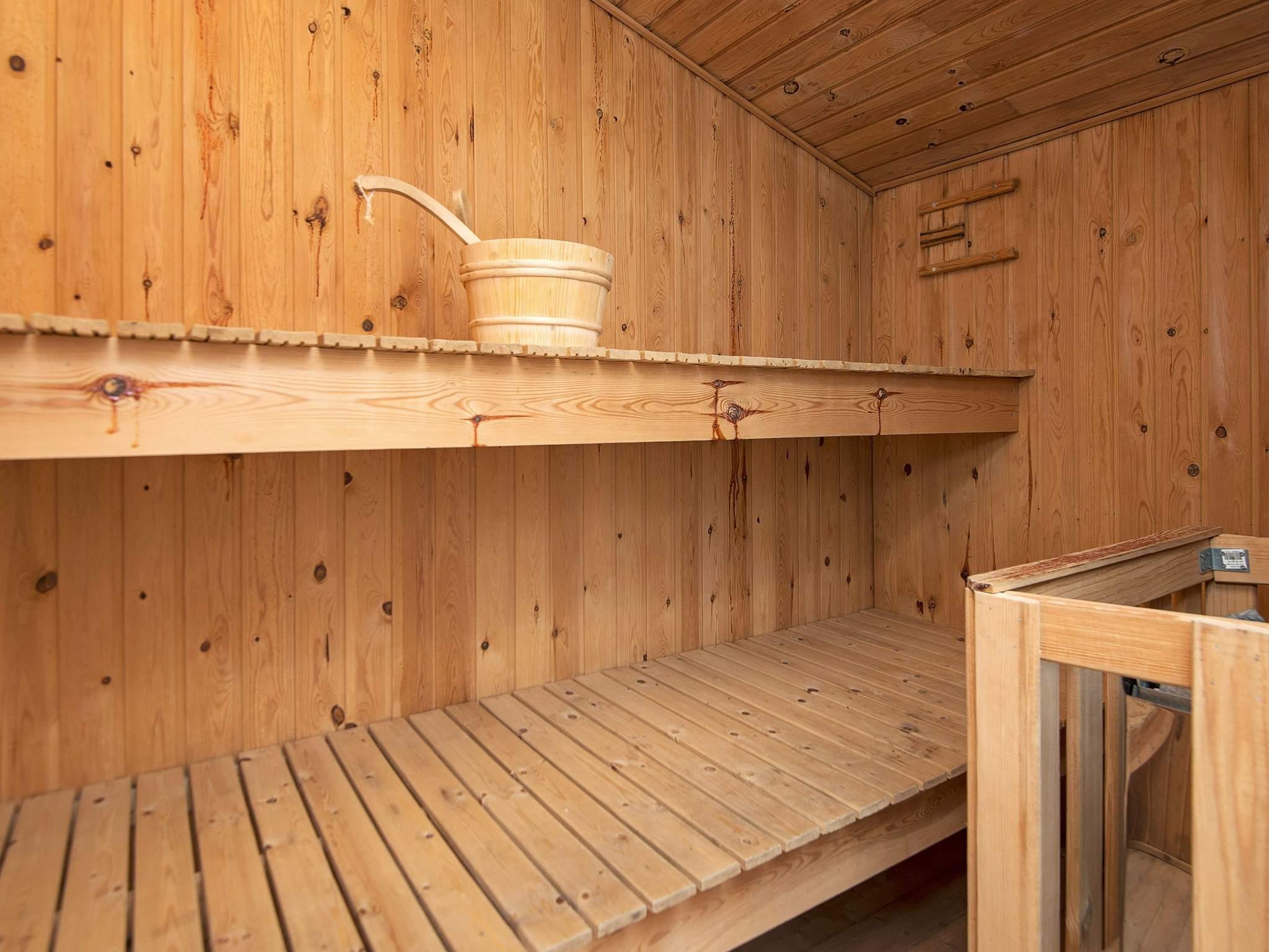 Swimmingpoolhus (renoveret 2001) opført i træ, der tilbyder en god feriekomfort for hele familien. Det imponerende poolrum på 42 m² er indrettet med klinkegulv. Her finder I den fristende 8-talsformede swimmingpool. Der er tre gode soveværelser, 2 badeværelser og en sauna til at varme sig i oven på dagens mange aktiviteter og oplevelser.