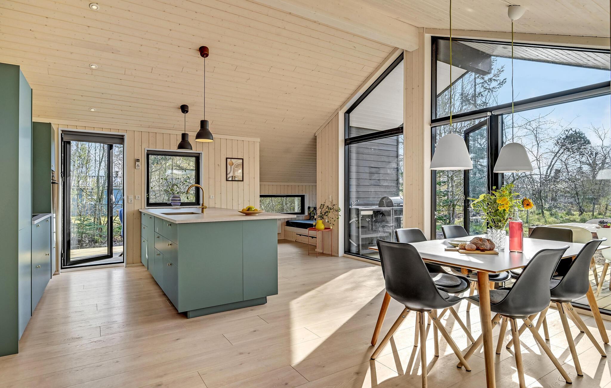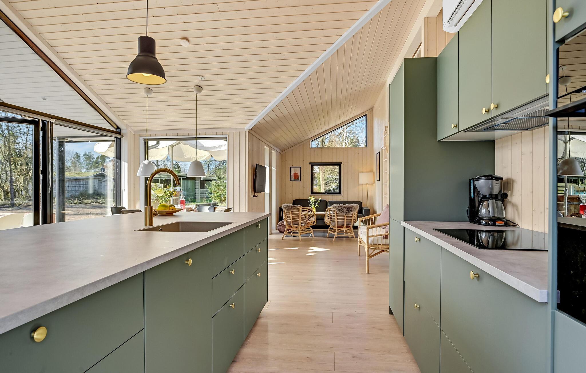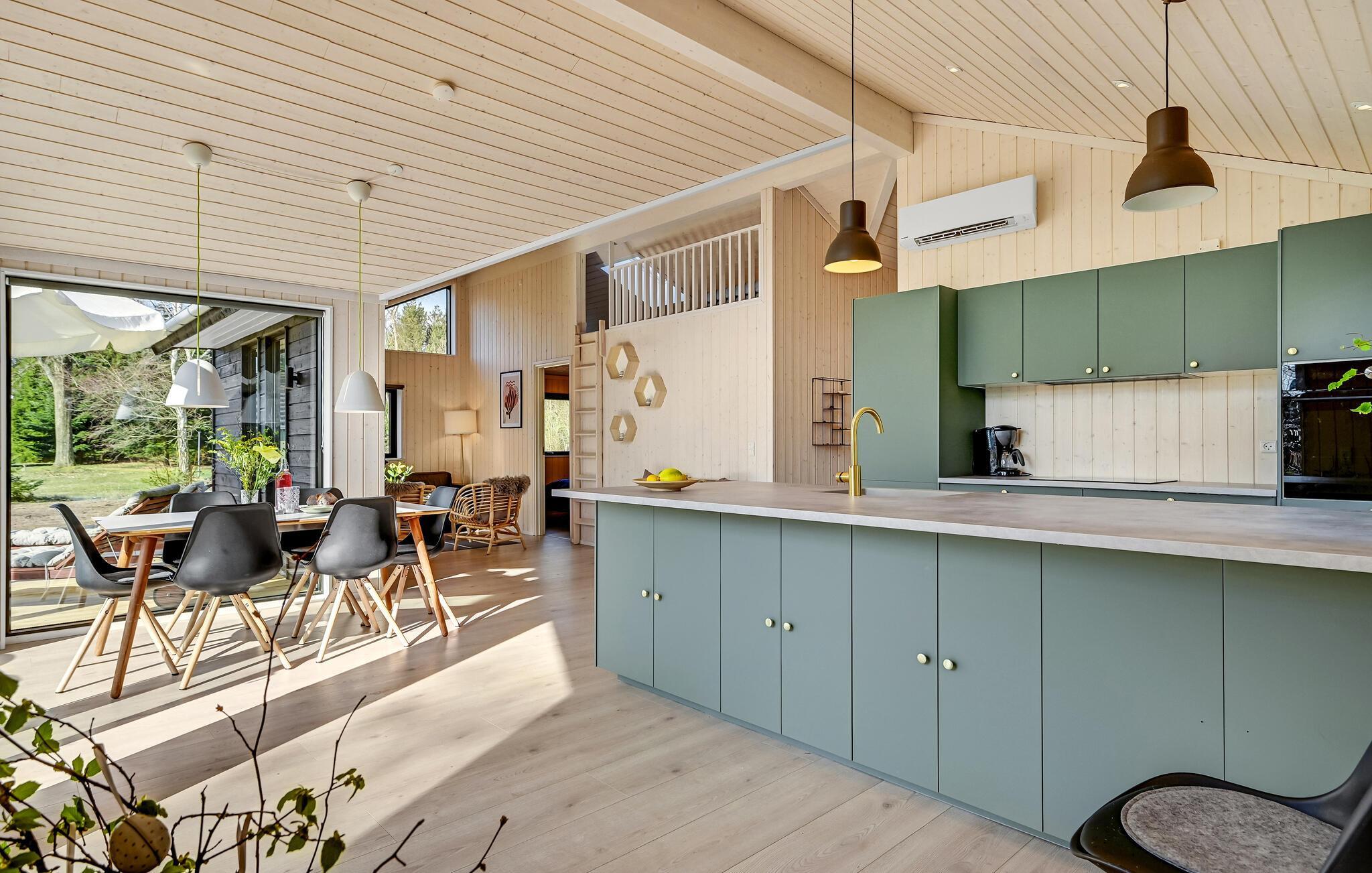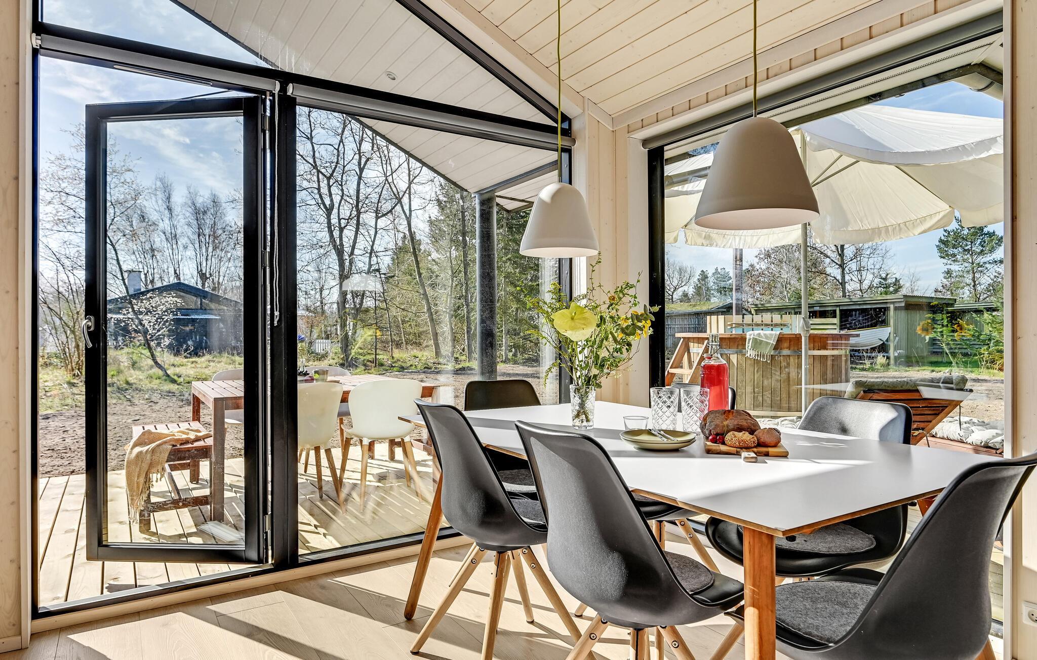 Luksus feriehus i Store Sjørup tæt på strand, med sauna, vildmarksbad og udendørs køkken for afslappende ophold.