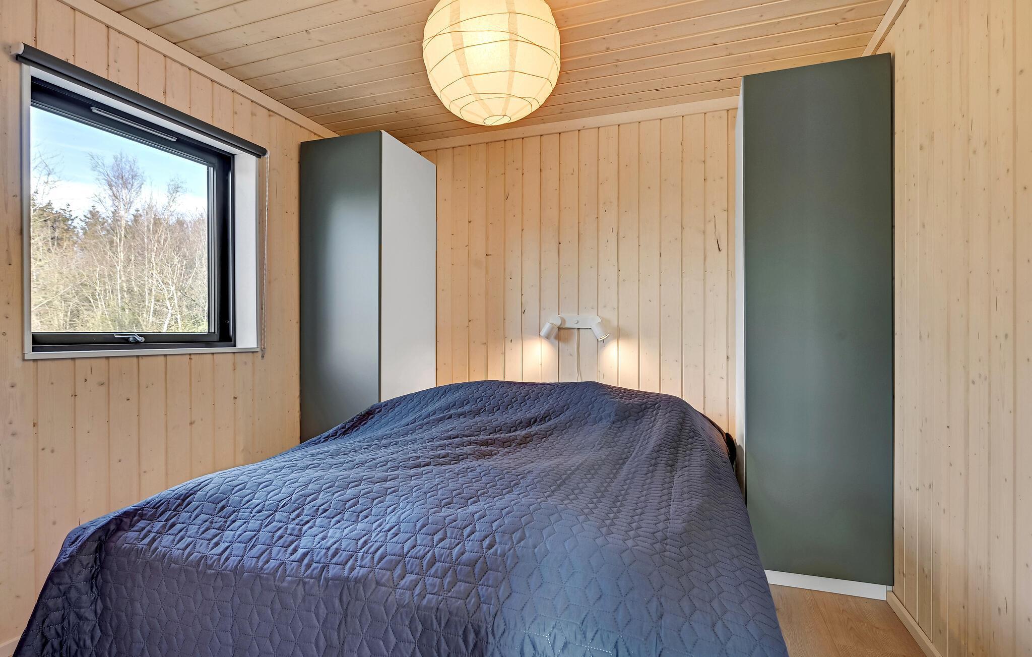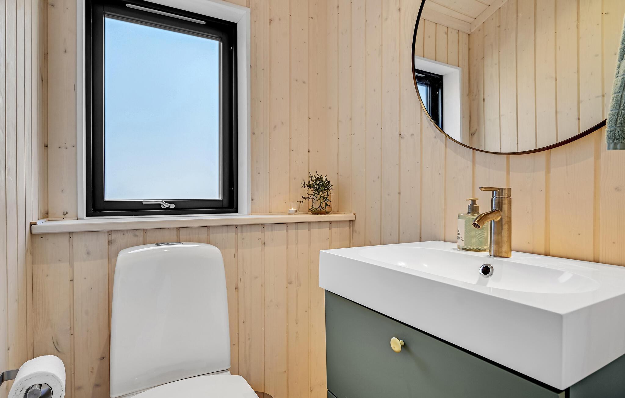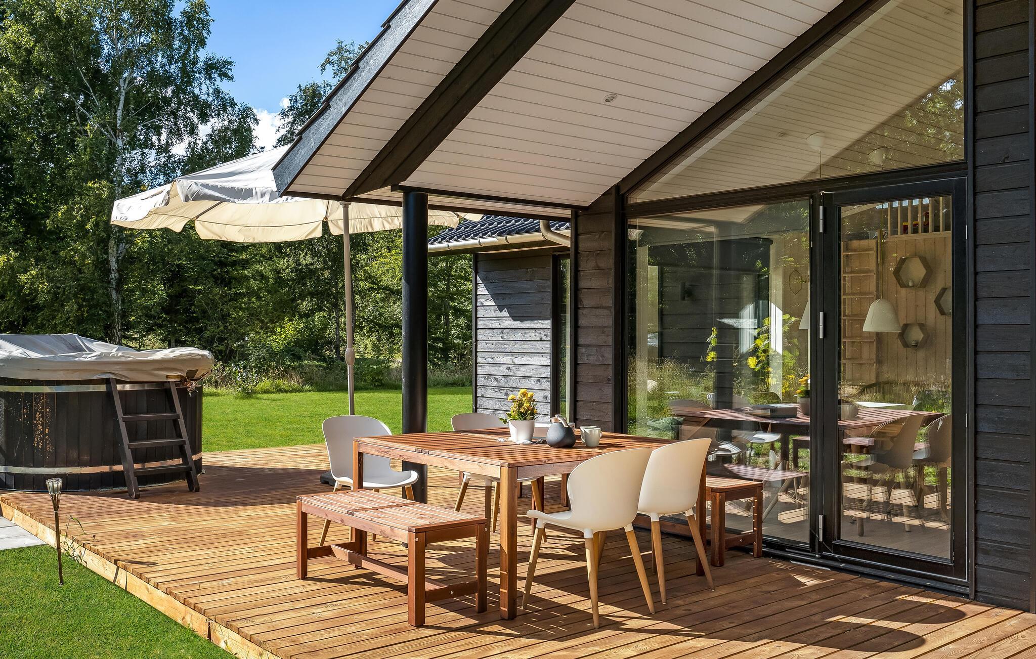 Velkommen til dette feriehus, der bliver jeres helt eget ferieparadis. Her kan I tilbringe en skøn og afslappet ferie. Start dagen med morgenmad og kaffe på terrassen, mens I lægger planer for dagen. Her er der kun 300 meter til stranden, hvor I kan bade og sole jer eller bare gå en frisk tur. Det er også dejligt bare at sidde på terrassen og læse en god bog, nyde solen og hyggesnakke, mens de mindste leger i sandkassen. Til huset hører en udendørs bruser, der er perfekt til hurtig afkøling på varme sommerdage og til at skylle sandet af sig efter en strandtur. Huset har også sauna, som er dejlig efter en lang gåtur og i det hele taget til ophold i køligere sæsoner. Om aftenen kan I tilberede et lækkert feriemåltid i det udendørs køkken, og når I har spist sætte jer godt til rette med en drink i vildmarksbadet. Fjernsyn med Chromecast sikrer aftenens underholdning.
