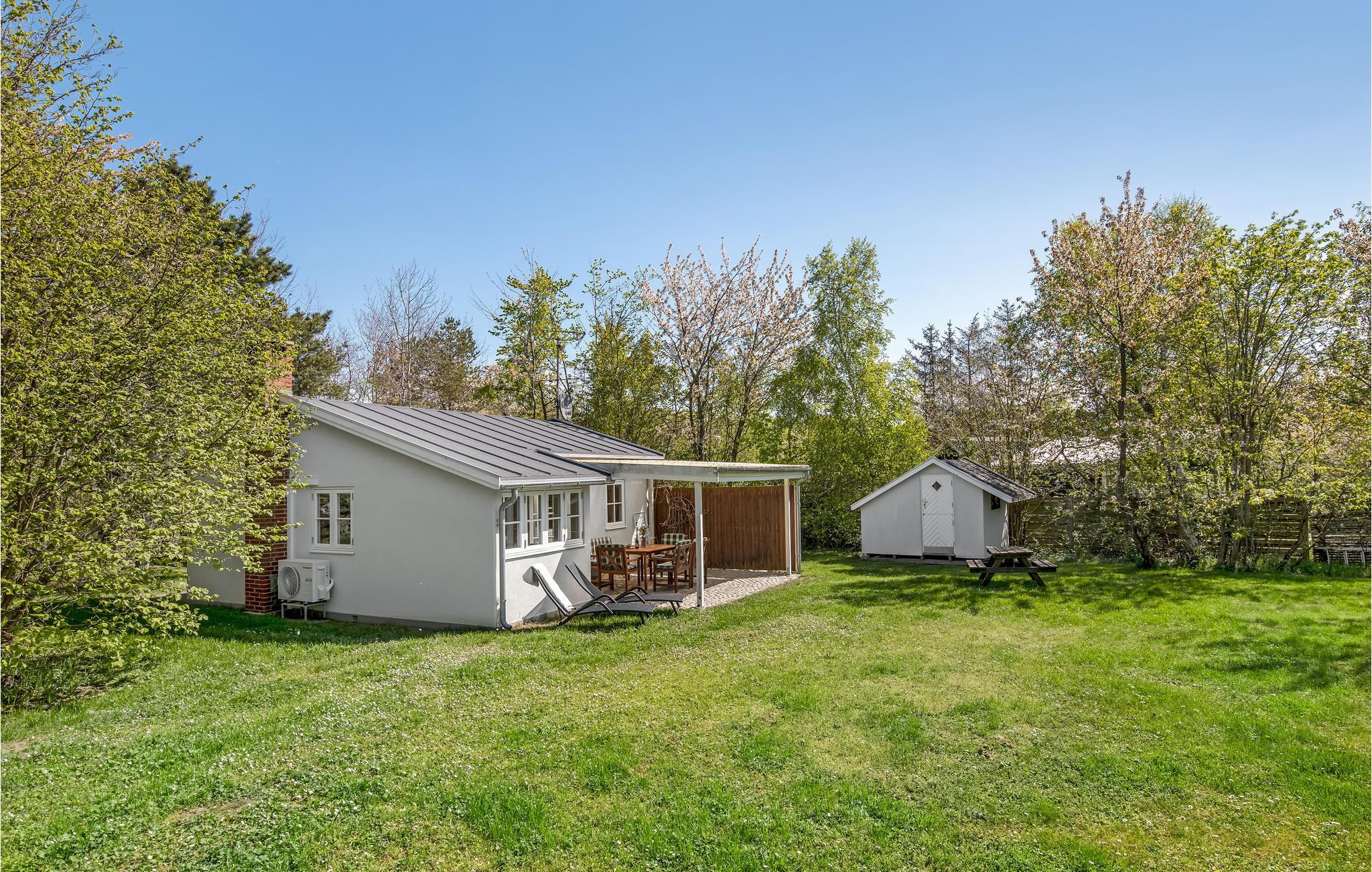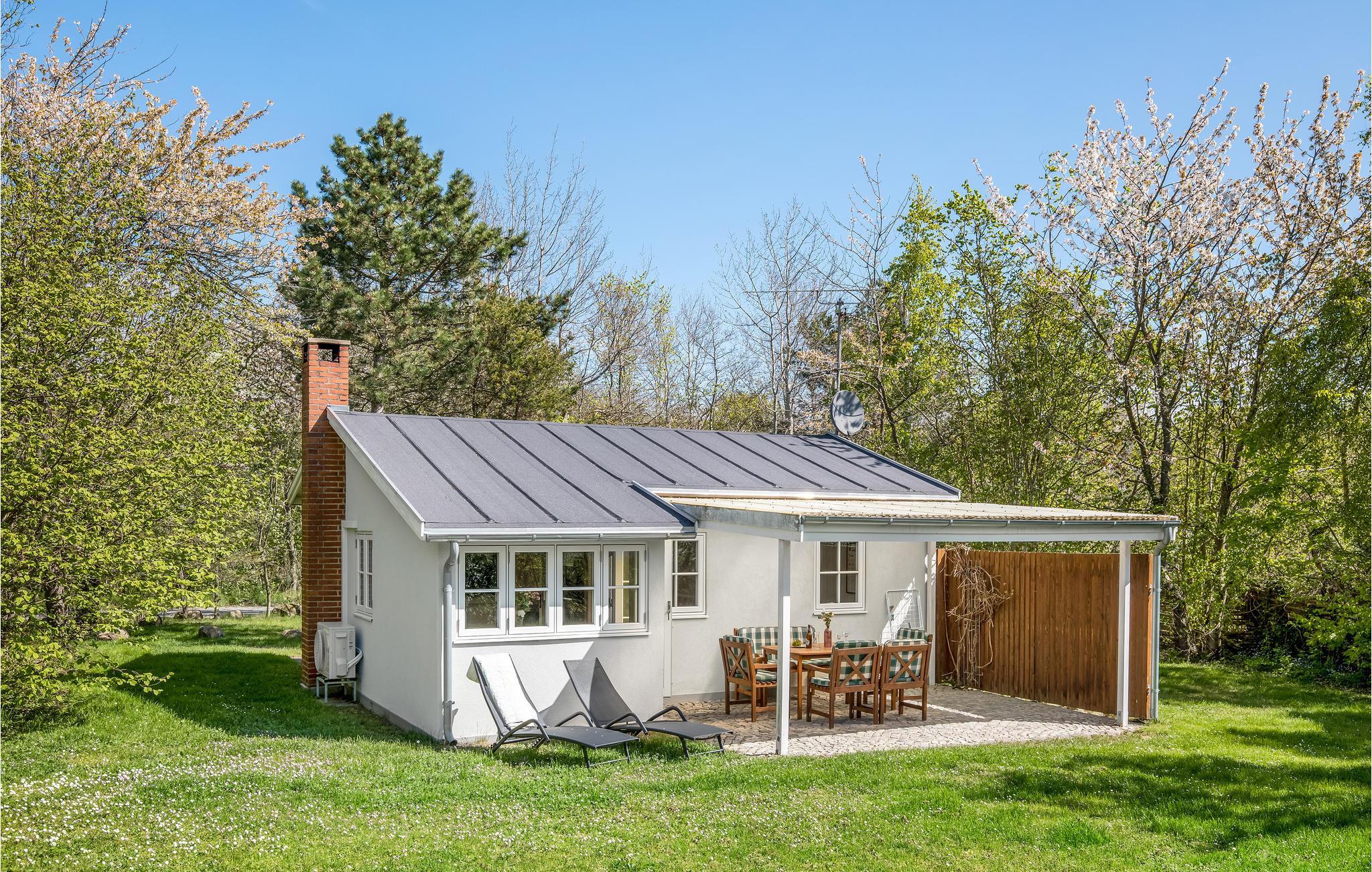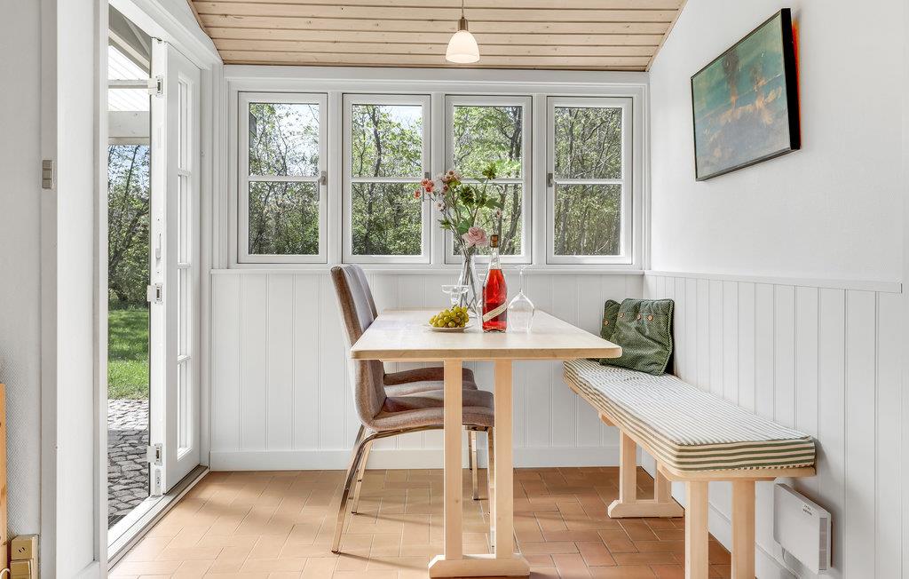 Charmerende sommerhus nær børnevenlig sandstrand i Stampen med brændeovn og overdækket terrasse.