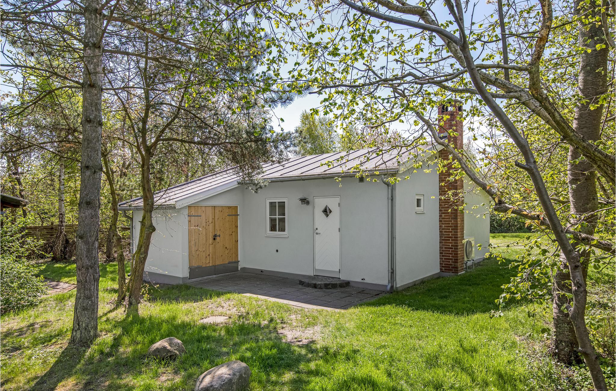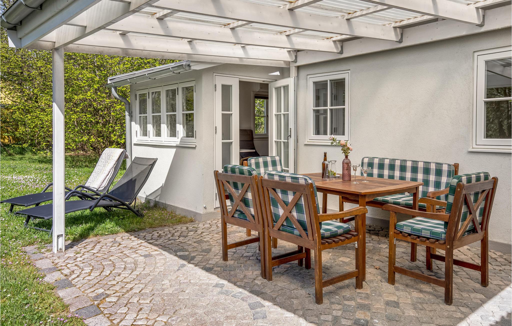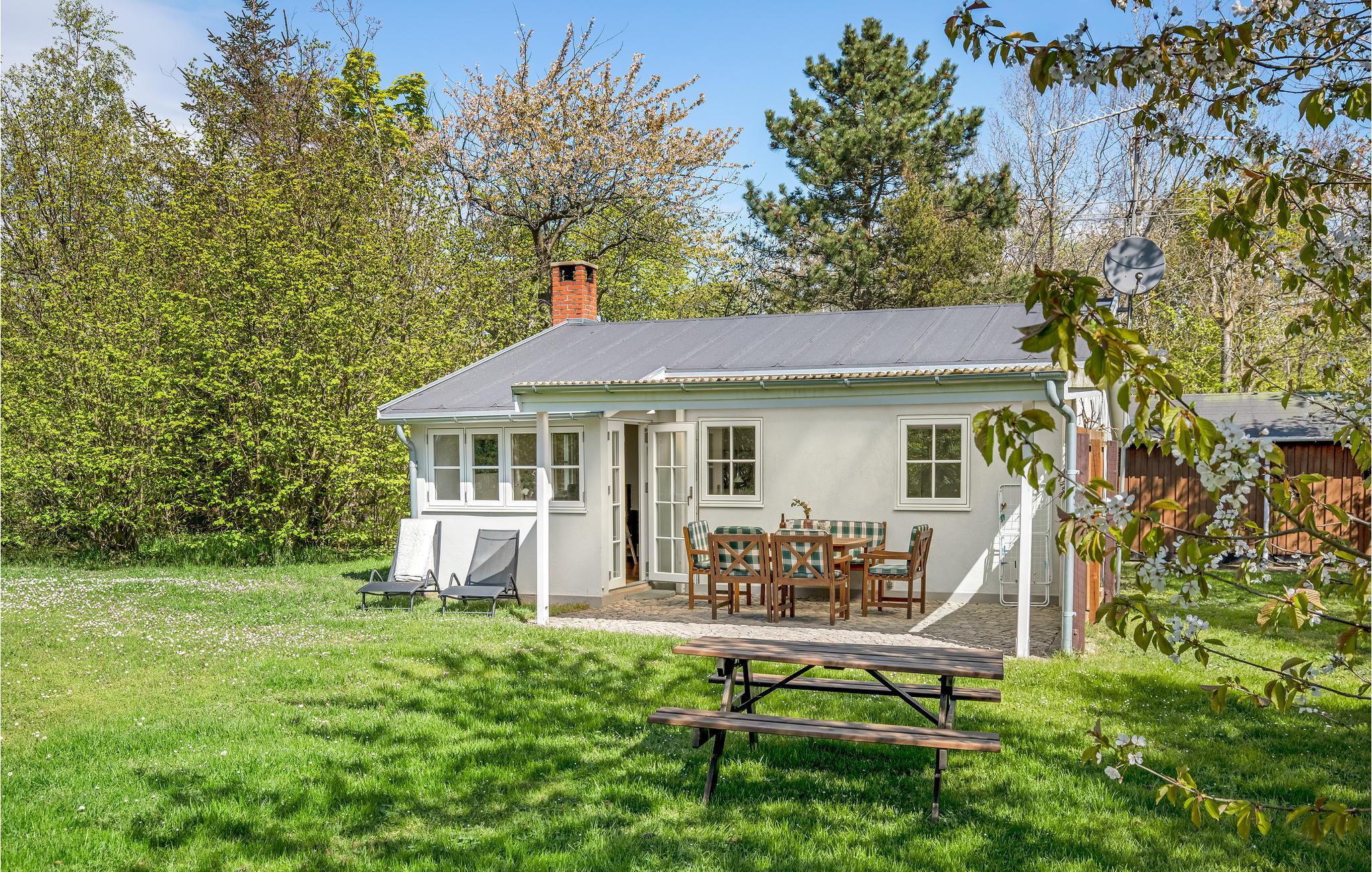 Charmerende sommerhus nær børnevenlig sandstrand i Stampen med brændeovn og overdækket terrasse.