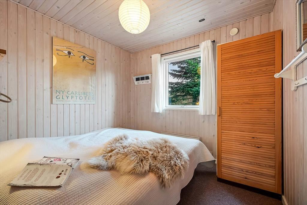 Inden døre i det klassiske træsommerhus er atmosfæren helt i top – ikke mindst i opholdsrummet, hvor et pænt køkken er integreret med stuen. Her er der god plads til at hygge sig med madlavningen, og efterfølgende kan I nyde lækkerierne ved spisebordet, mens I vender dagens små og store oplevelser. Inden I rykker over i sofaen, kan I tænde op i brændeovnen, og varmepumpen kan også tages i brug, hvis temperaturen skal reguleres yderligere. Sommerhuset byder også på tre soveværelser, hvoraf to er indrettet med dobbeltseng og det tredje med en dobbelt sovesofa, og på badeværelset er der både bruseniche og vaskemaskine, så både I selv og jeres tøj kan blive frisket op i løbet af ferien.