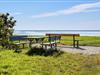 Sommerhusets terrasse er sydvendt, så den vender ud mod den ugenerede baghave og er samtidig godt orienteret i forhold til solen. Foretrækker I skygge, kan I slå parasollen op, inden I finder kølige drikke frem og gør klar til sommerfrokosten.