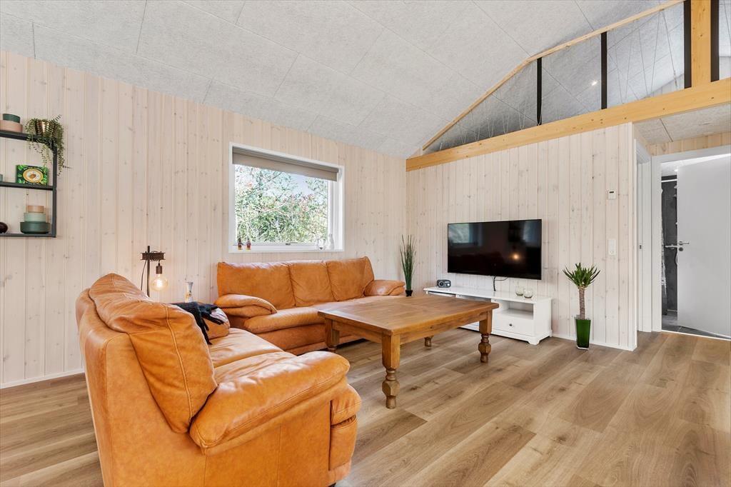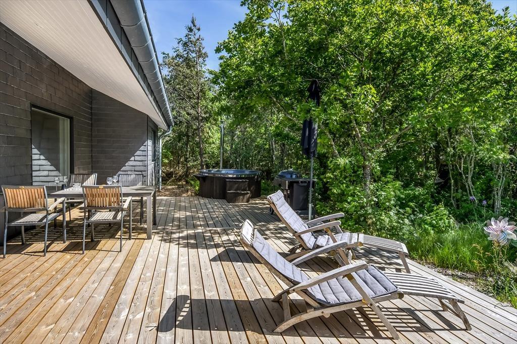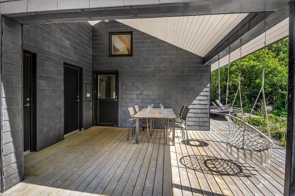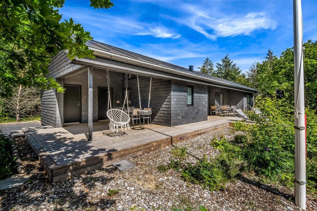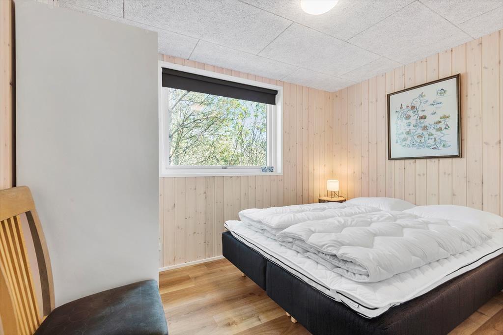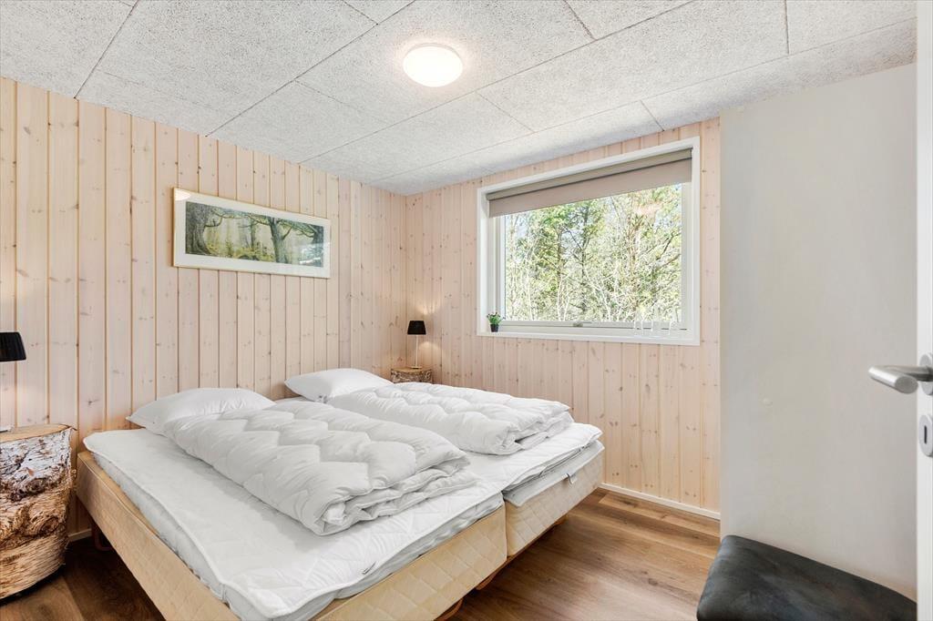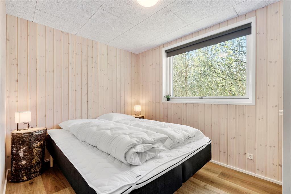 Trænger I til at slappe helt af, har I kig på det rette sted, for med et moderne sommerhus som dette kan I forvente, at alt bare spiller. Atmosfæren er lys og indbydende overalt i det 119 m2 store hus, og med tre soveværelser og to badeværelser er planløsningen perfekt til seks personer. De tre soverum er alle indrettet med komfortable dobbeltsenge, og fra stuen har I derudover adgang til to hemse, hvoraf den ene er udstyret med ekstra madrasser. Badeværelserne har begge bruser og gulvvarme, og på det største er der mulighed for at tage et varmt spabad. I kan også koble af i stuen, som er et skønt opholdsrum med loft til kip, gennemstrømmende lysindfald, åbent køkken og hyggeligt møblement. Ud over gulvvarmen på badeværelserne opvarmes huset for øvrigt af en energivenlig luft til vand-varmepumpe.