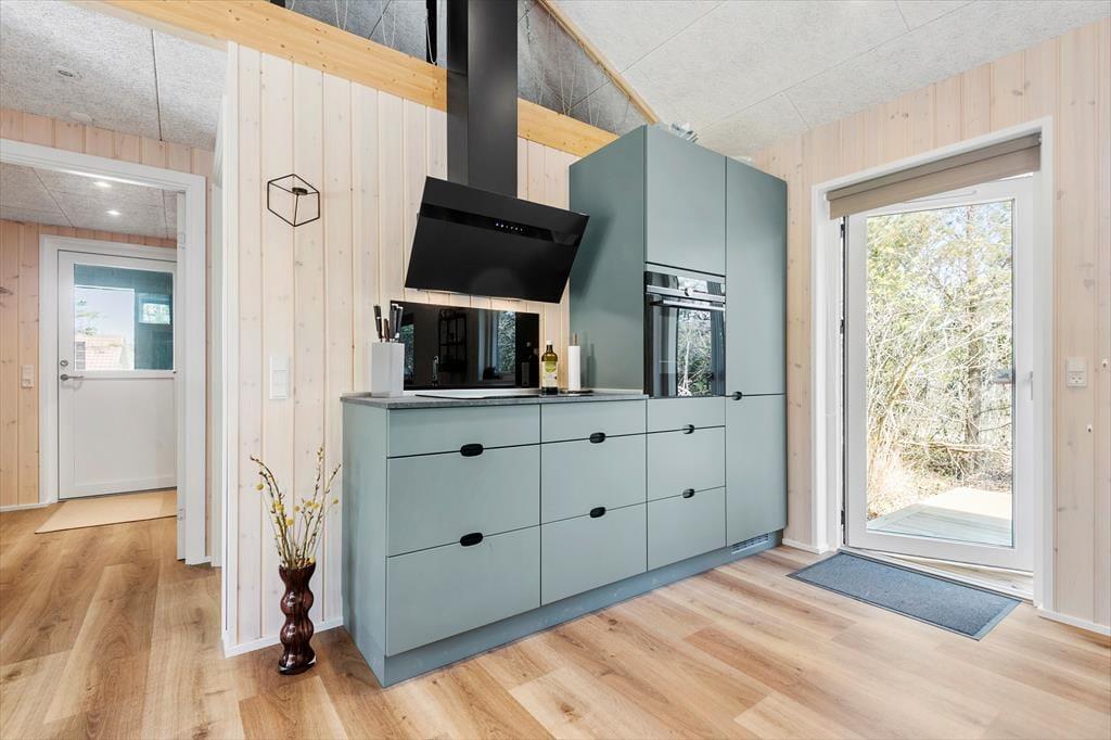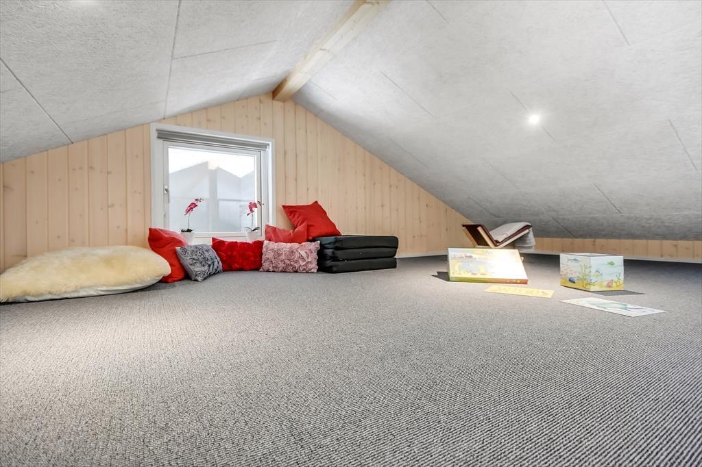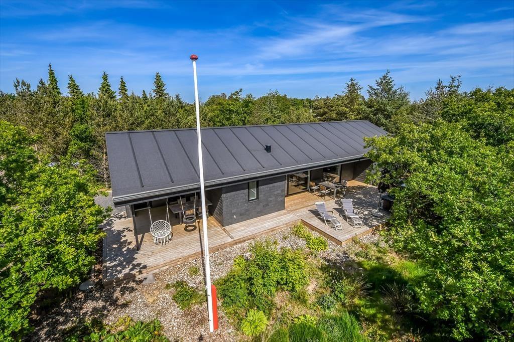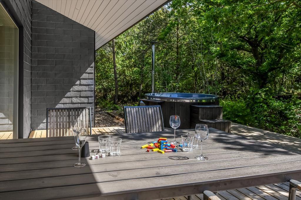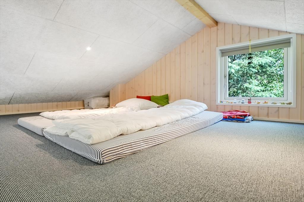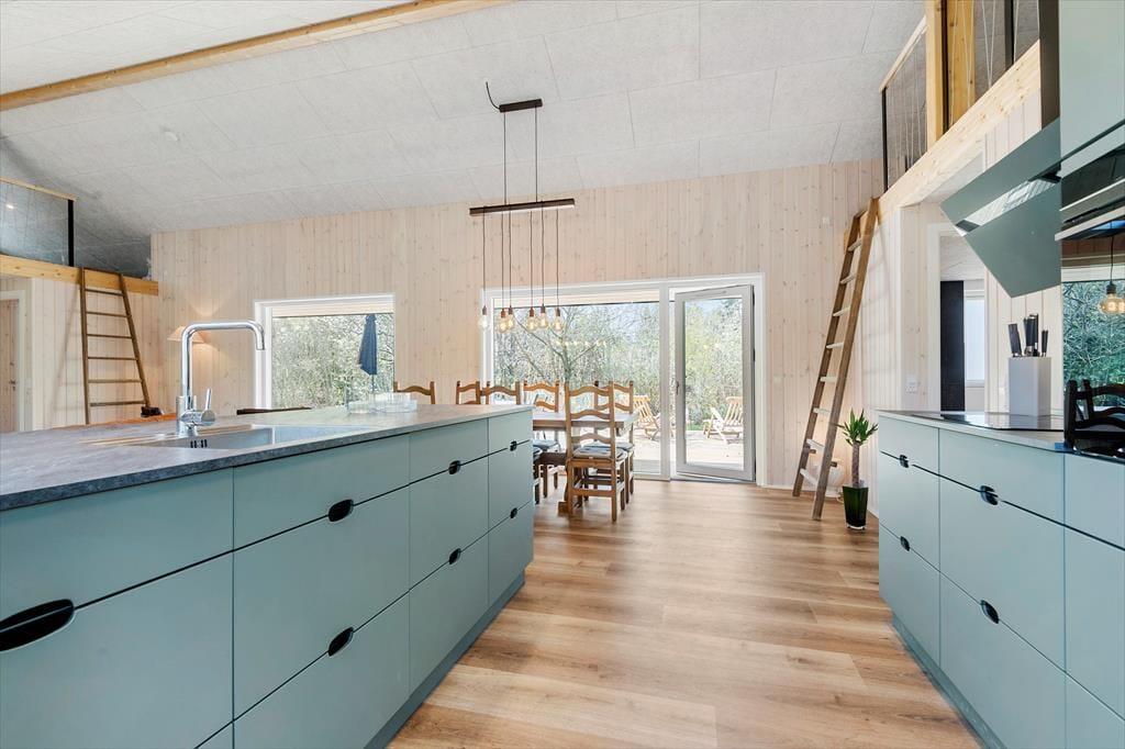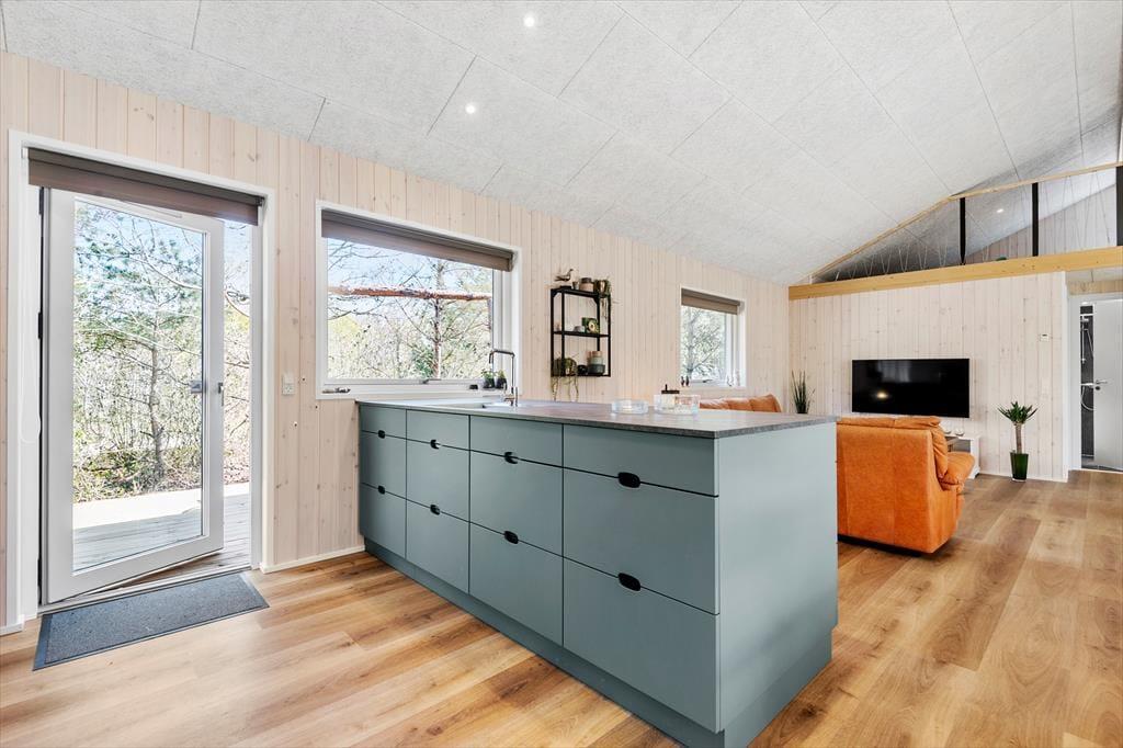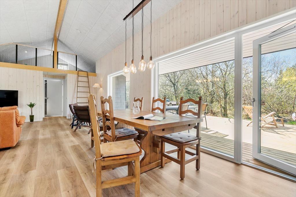 Trænger I til at slappe helt af, har I kig på det rette sted, for med et moderne sommerhus som dette kan I forvente, at alt bare spiller. Atmosfæren er lys og indbydende overalt i det 119 m2 store hus, og med tre soveværelser og to badeværelser er planløsningen perfekt til seks personer. De tre soverum er alle indrettet med komfortable dobbeltsenge, og fra stuen har I derudover adgang til to hemse, hvoraf den ene er udstyret med ekstra madrasser. Badeværelserne har begge bruser og gulvvarme, og på det største er der mulighed for at tage et varmt spabad. I kan også koble af i stuen, som er et skønt opholdsrum med loft til kip, gennemstrømmende lysindfald, åbent køkken og hyggeligt møblement. Ud over gulvvarmen på badeværelserne opvarmes huset for øvrigt af en energivenlig luft til vand-varmepumpe.