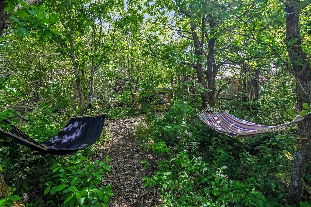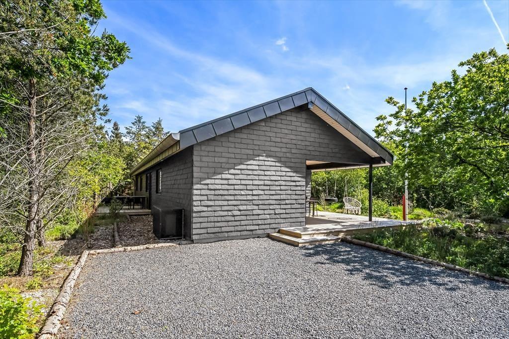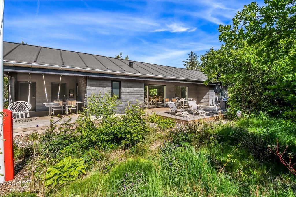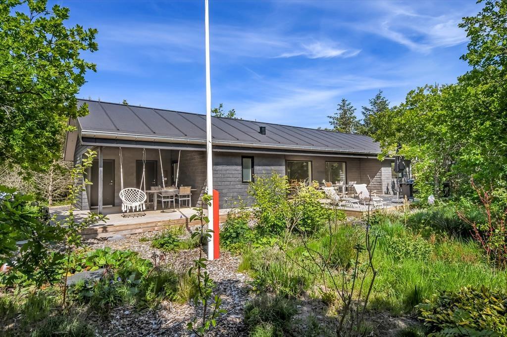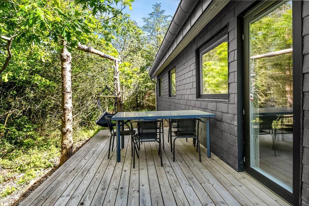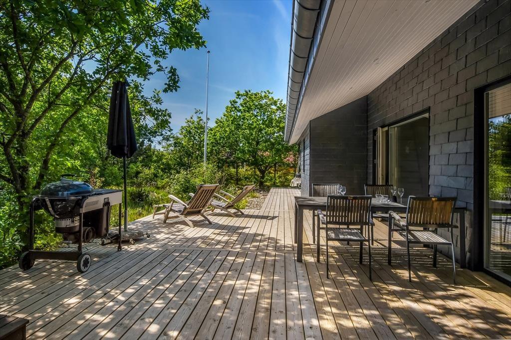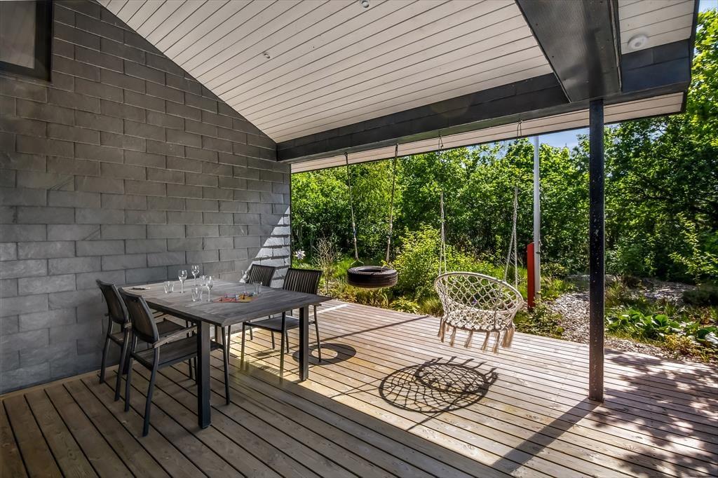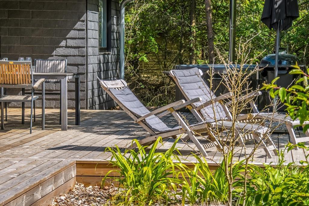 På den 1193 m2 store naturgrund skærmer beplantningen huset og terrassen af og giver jer en grøn ramme om det udendørs driverliv. En delvist overdækket og dejligt stor træterrasse er orienteret mod syd, og der er også mulighed for at sætte sig på den anden side af huset, hvor en mindre terrasse ligger. Er der ikke terrassehygge og grill på programmet, kan I smutte ind mellem grundens træer for at lege gemme, lave bål eller tage en slapper i hængekøjerne. Endelig skal det nævnes, at der er CEE-stik, så opladning af elbil er muligt.