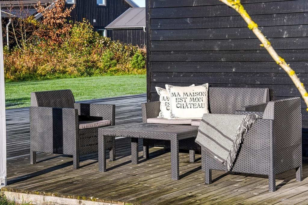 Fra stuen er der direkte adgang til sommerhusets hyggelige terrasse, hvor du kan nyde morgenkaffen, mens solen står op over det grønne landskab. Terrassen indbyder til afslapning og måltider under åben himmel, og den omkringliggende have giver plads til leg og hyggelige udendørsaktiviteter. Her er også rig mulighed for at finde en rolig plet, hvor du kan læse en bog eller blot lytte til fuglenes kvidren. For de aktive sjæle er der plads til boldspil og andre aktiviteter på græsplænen, og området omkring huset indbyder til gåture i det smukke landskab.