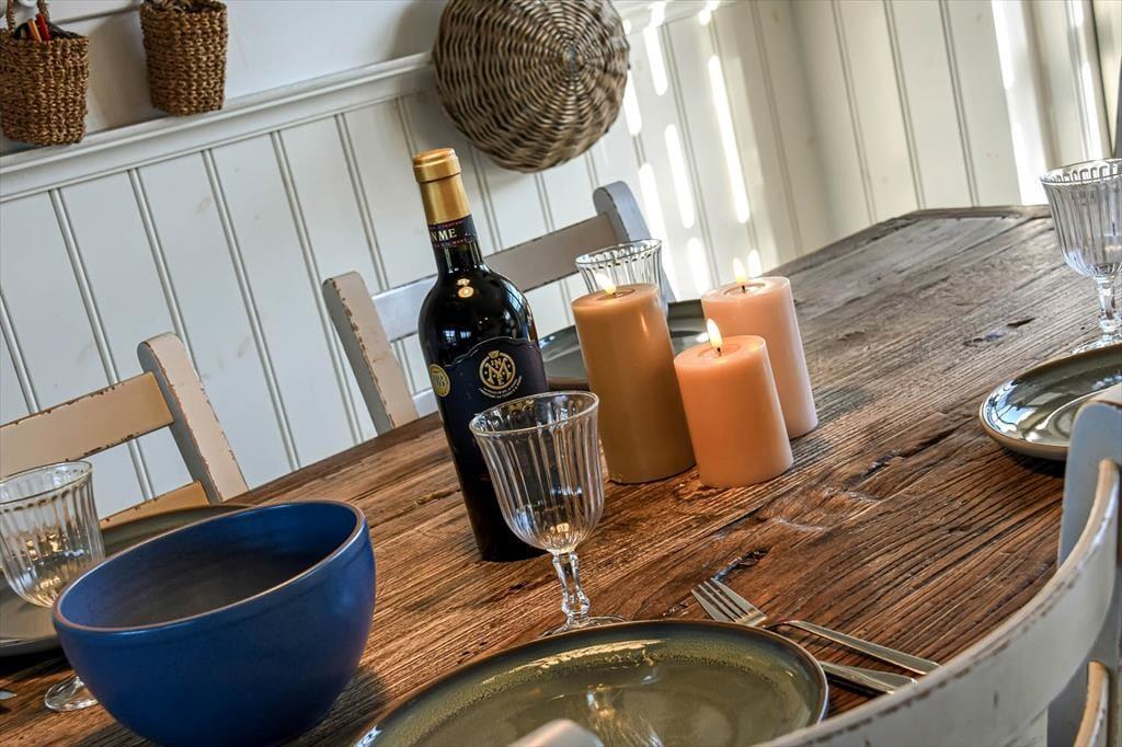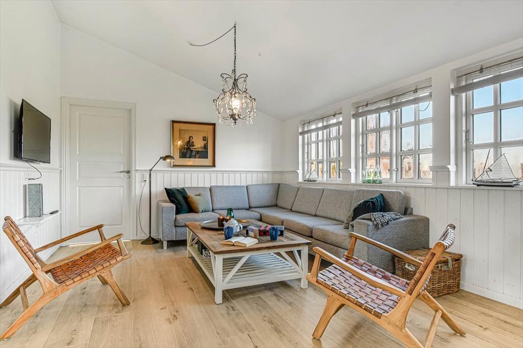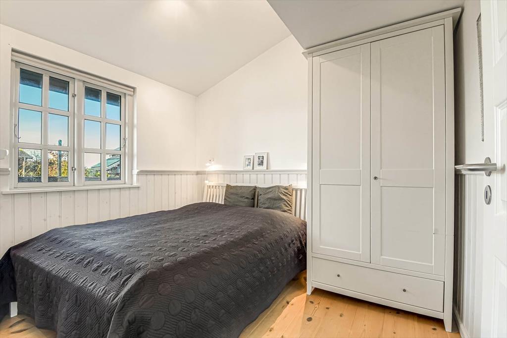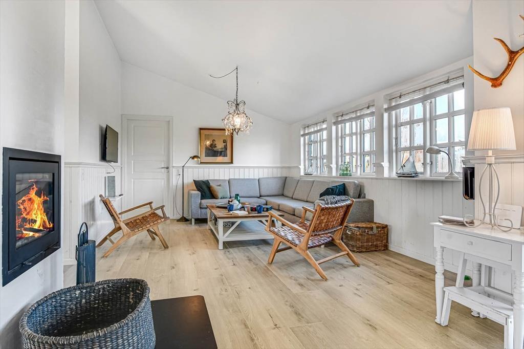 Når du træder indenfor i sommerhuset, mødes du af en varm og indbydende atmosfære, der straks får dig til at føle dig hjemme. Den åbne opholdsstue med loft til kip er et skønt samlingssted for familien, hvor brændeovnens knitrende varme spreder hygge på kølige dage. Store vinduespartier lukker lyset ind og skaber en forbindelse til den omkringliggende natur, mens det moderne køkken, der ligger i åben forbindelse med stuen, giver rig mulighed for at samles om madlavning og gode samtaler. Sommerhuset rummer også fine værelser med en behagelig stemning – perfekt til afslappende stunder efter en dag fuld af oplevelser.