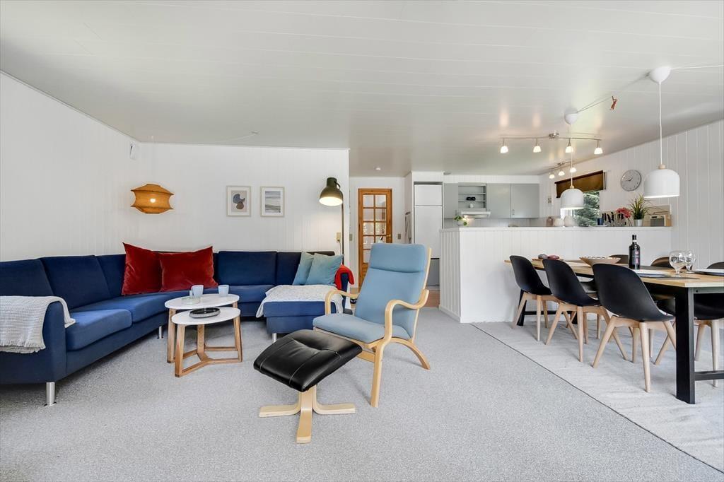 Når du træder ind i sommerhuset, mærker du straks den varme og afslappede stemning, som gør det nemt at falde ned i ferietempo. Indretningen er lys og hjemlig, og stuen fungerer som husets naturlige samlingspunkt. Her kan I nyde hyggelige måltider ved spisebordet, spille spil i sofaen eller lade brændeovnens knitren sætte scenen for en stille stund med en god bog. Det åbne køkken gør det let at være sammen, selv når der kokkereres, og hele huset er indrettet med blik for både samvær og privatliv, så der er plads til, at alle kan trække sig og lade op. Ferielivet her er præget af ro og nærhed – det handler om at være sammen og nyde de små øjeblikke.
