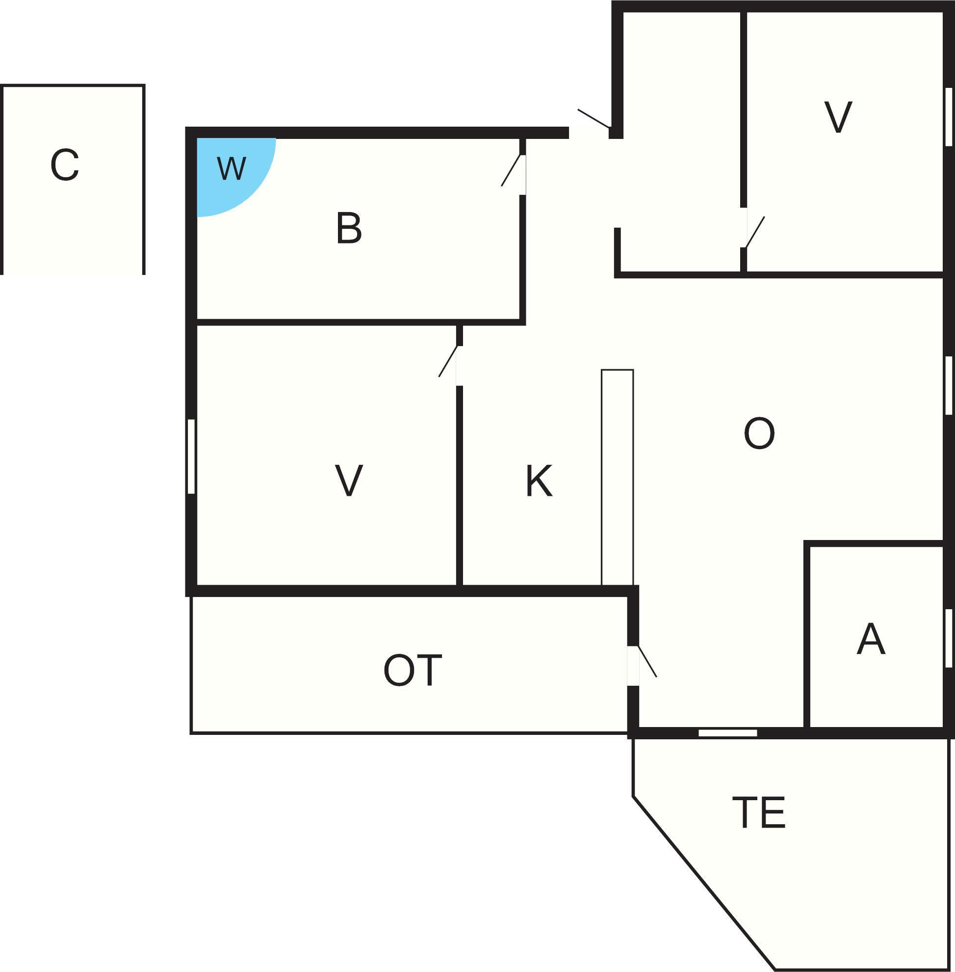 Sommerhus med personlige linjer beliggende midt i en lille oase på en lukket grund med træer og buske rundt om huset. Alkoven er rigtig fin som mulighed for legested for de mindste. Huset ligger ca. 400 m fra Ringkøbing Fjord, som er et af Europas bedste surfområder både til windsurfing og kitesurfing.