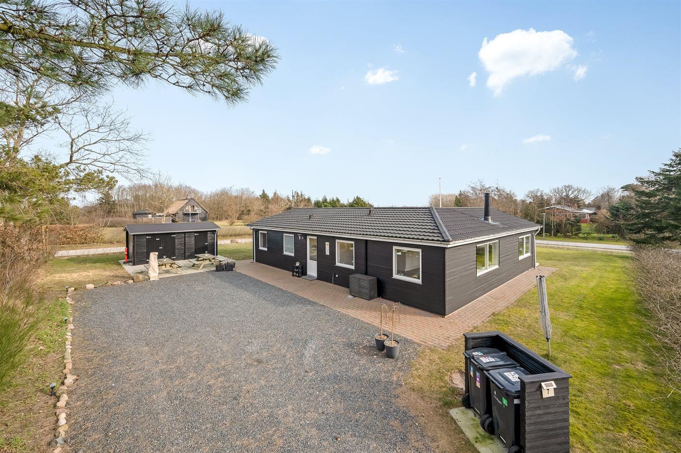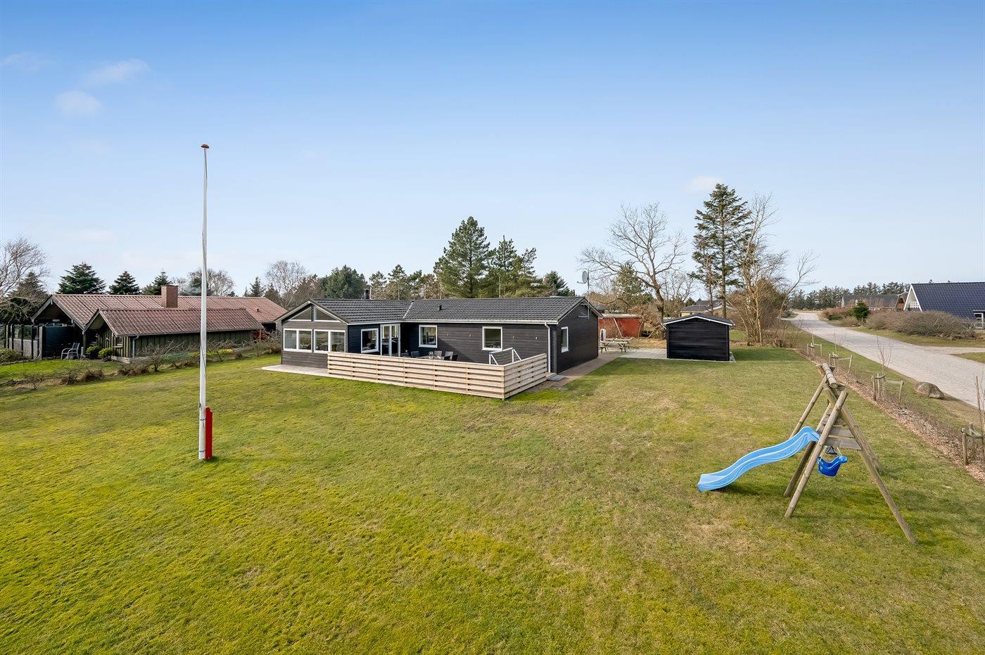 Ferieboligen er beliggende på en 1200 m² stor havegrund. Der er 300 m til fjorden. Der er en sø i en afstand af 250 m. Nærmeste forretning er beliggende i en afstand af 750 m. Til ferieboligen hører åbent terrasseareal. Der er redskabsrum. Gynge. Rutchebane. Fodboldmål. Der er installeret stik til opladning af elbil. Type 2 stik. Med 11 kW ladeeffekt. Parkering ved ferieboligen.