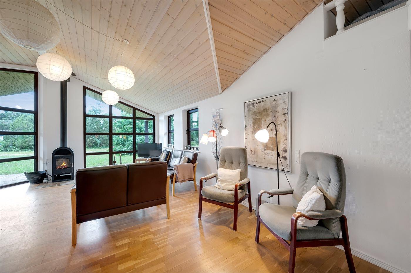 Sommerhus beliggende i rolige og naturskønne omgivelser. Huset har en stor hems med 2 sovepladser - et godt hygge- og legested for børn. Kør en tur til den lille stemningsfyldte havn i Stauning, hvor I bl.a. finder en kunstig anlagt soppestrand (velegnet til børn). Der findes Put & Take sø i området.