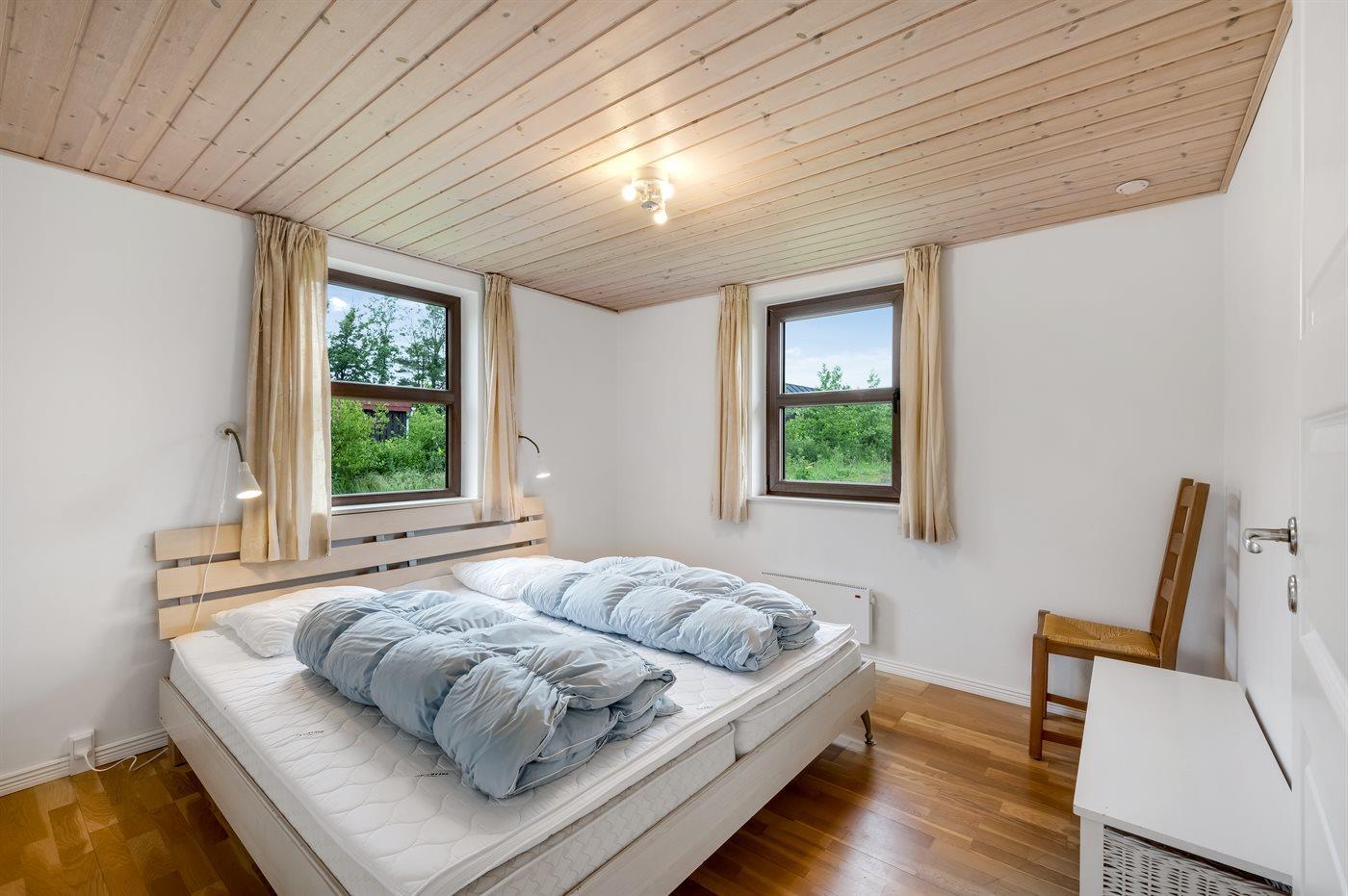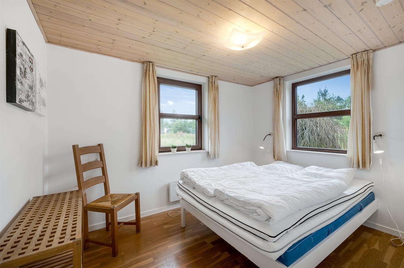 Der er i alt 4 soveværelser. Sovepladserne fordeler sig på: 6 sovepladser i dobbeltsenge. 4 sovepladser i enkeltsenge. 2 af disse sovepladser befinder sig på husets hems. Derudover er der 1 stk. barneseng.