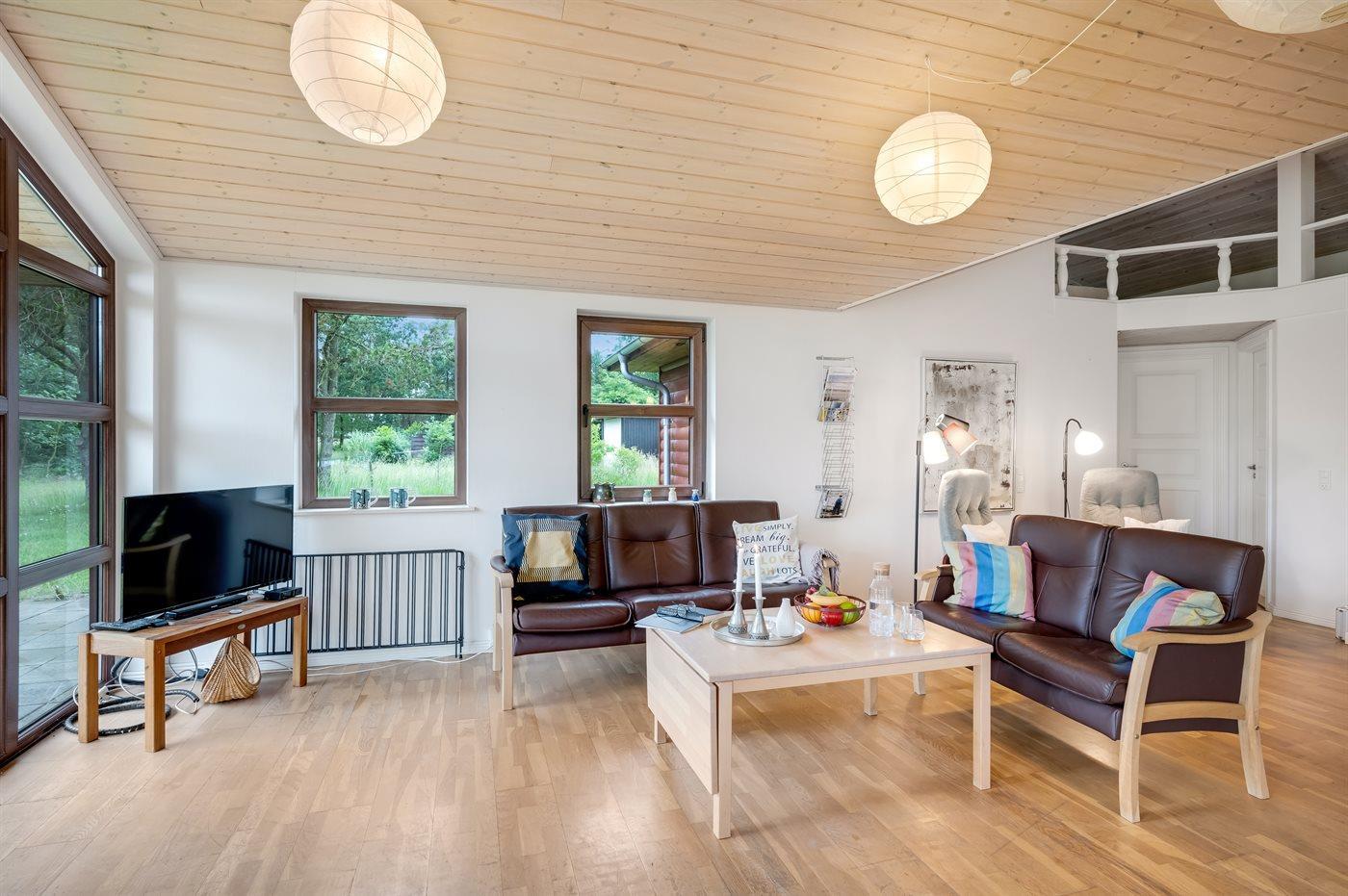 Flot sommerhus i rolige omgivelser nær fjord og sauna med stor terrasse og plads til hele familien.