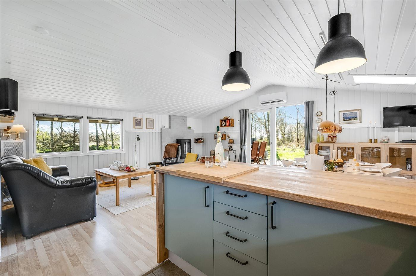 Hyggeligt sommerhus i Stauning med trægulve, brændeovn og stor naturgrund nær fjord og natur.