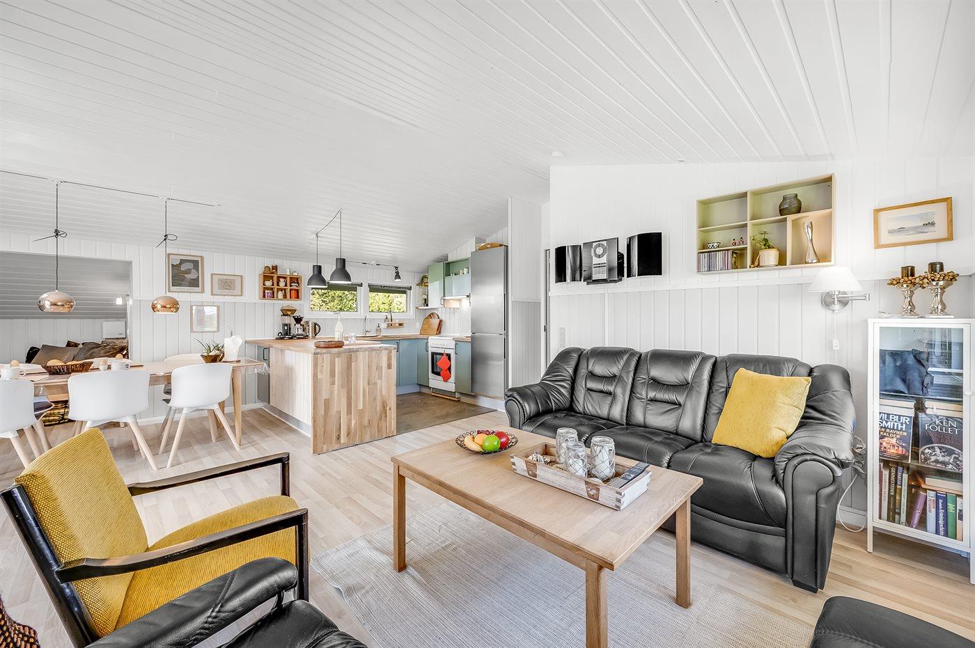 Hyggeligt sommerhus med trægulv overalt. Fællesareal med legeredskaber, petanquebane, grillplads ligger 5 min. gang fra huset.