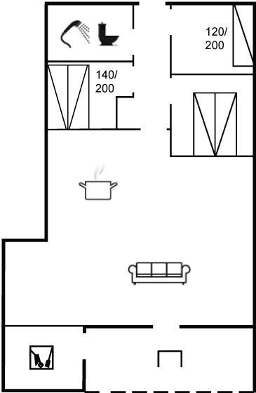 Der er i alt 3 soveværelser. Sovepladserne fordeler sig på: 4 sovepladser i dobbeltsenge. 1 soveplads i enkeltseng.