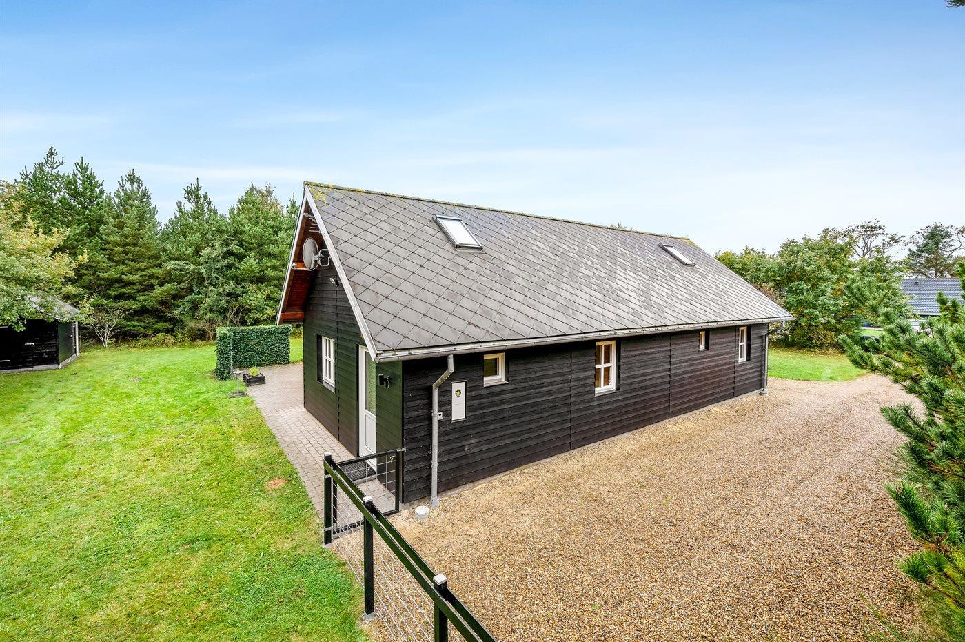 Ferieboligen er beliggende på en 1230 m² stor naturgrund. Grunden er indhegnet. Der er 25000 m til havet. Der er 350 m til fjorden. Nærmeste forretning er beliggende i en afstand af 4500 m. Til ferieboligen hører 40 m² terrasseareal. Desuden er der 18 m² overdækket terrasse. Der er redskabsrum. Der er installeret stik til opladning af elbil. Type 2 stik. Med 9 kW ladeeffekt. Parkering ved ferieboligen.