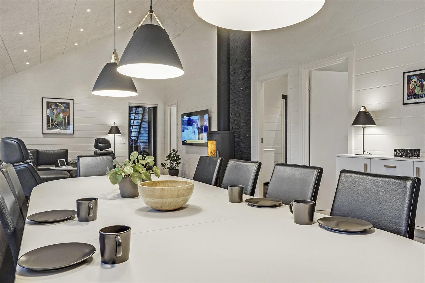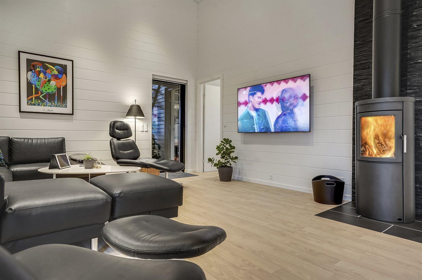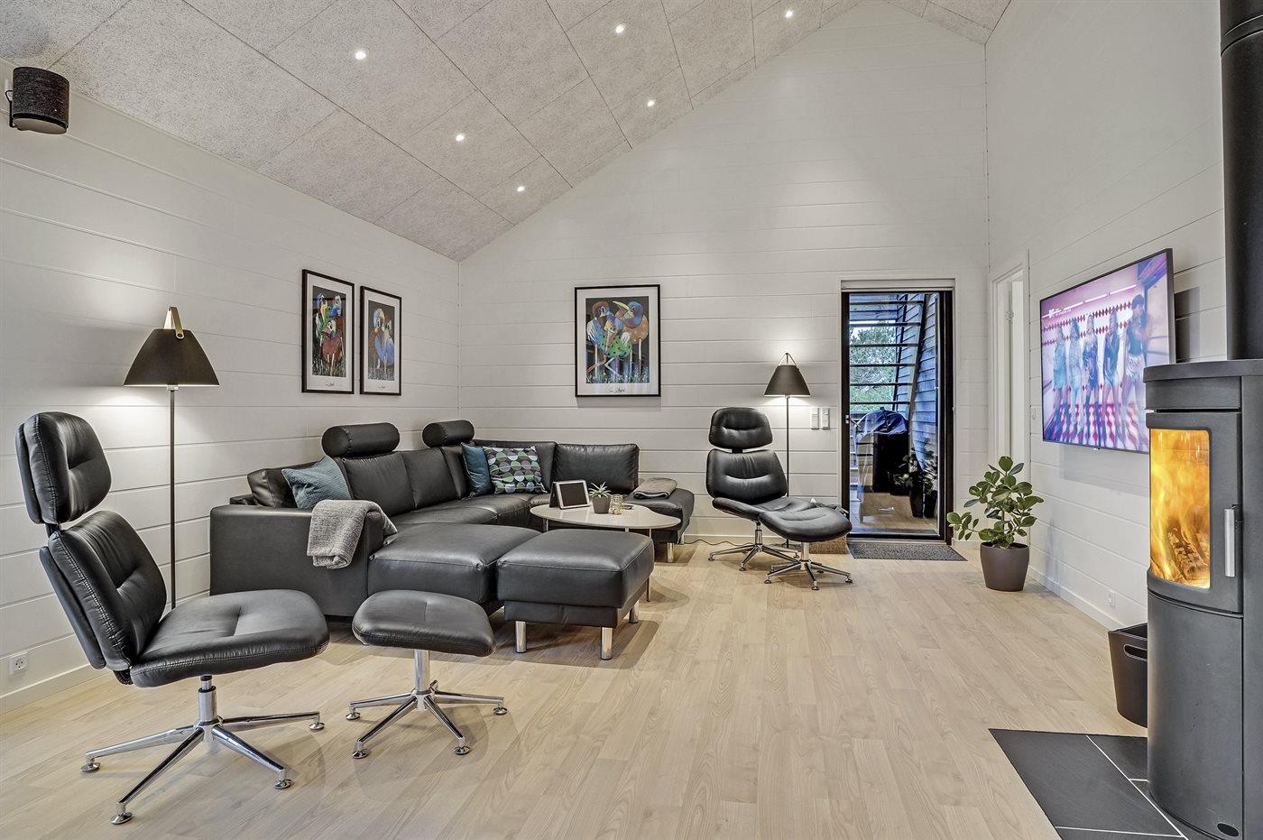 Alrummet er udstyret med spisebord med plads til 12 personer og dæmp bare loftspendler. Stuen er med stort sofaarrangement med 65” stor smart TV med Chromecast samt og SONOS højtaler, som er Bluetooth styret. Der findes desuden 2 Ipads, der kan anvendes til bl.a. Chromecast.