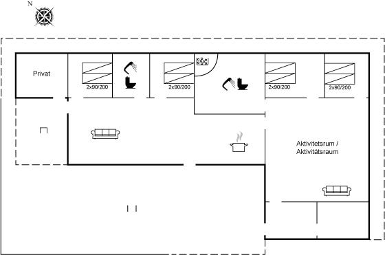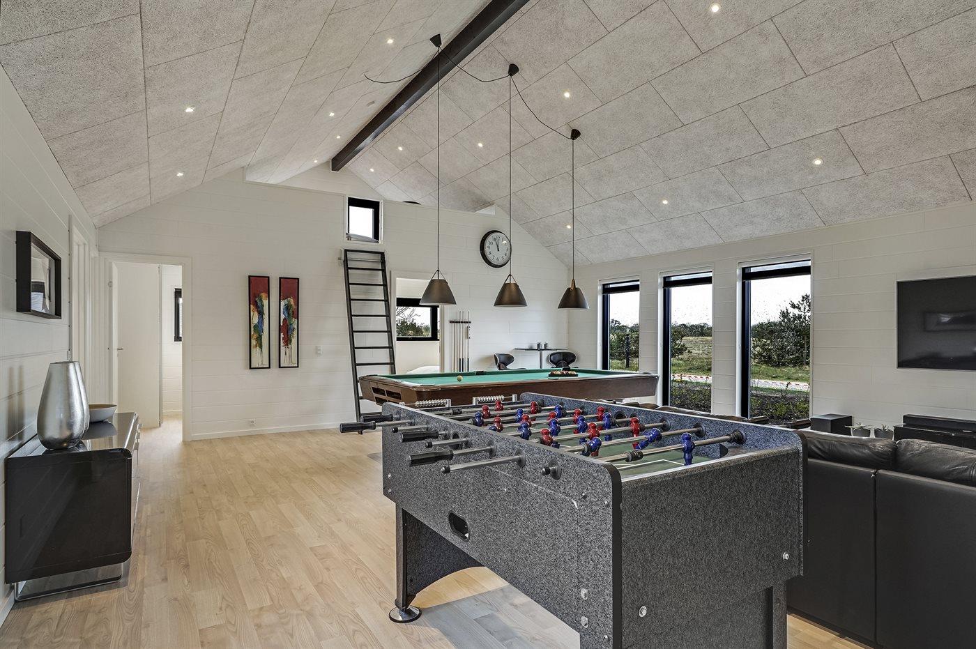 I aktivitetsrummet er der pool bord/billard samt bordfodbold. Desuden stort sofaarrangement med 65” stor smart TV med Chromecast og surround anlæg som giver en fabelagtig biograf stemning.