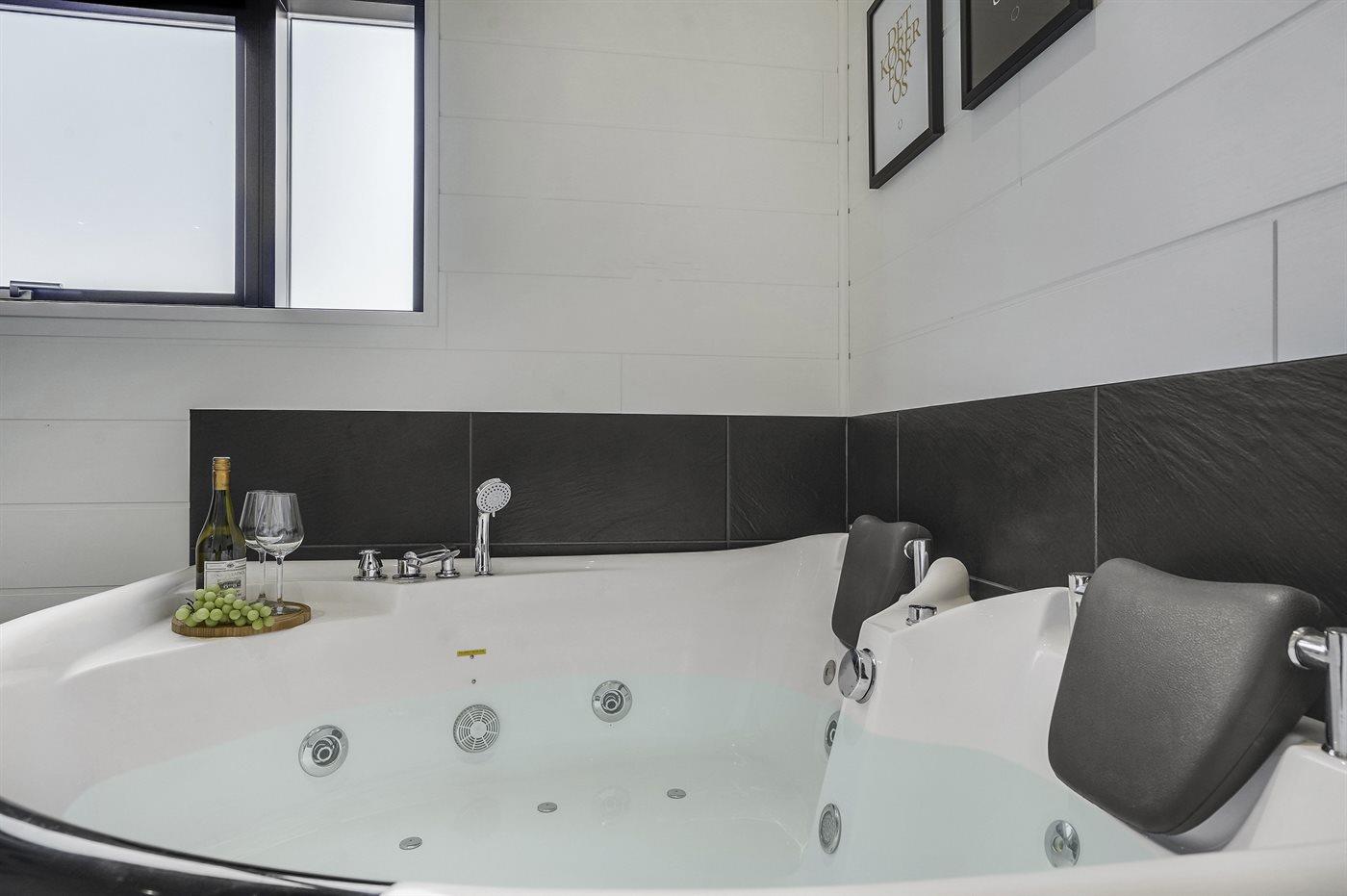 Der er 2 badeværelser hver med bruseniche og toilet. Det store badeværelse har desuden indendørs spa med plads til afslapning for 2 personer.