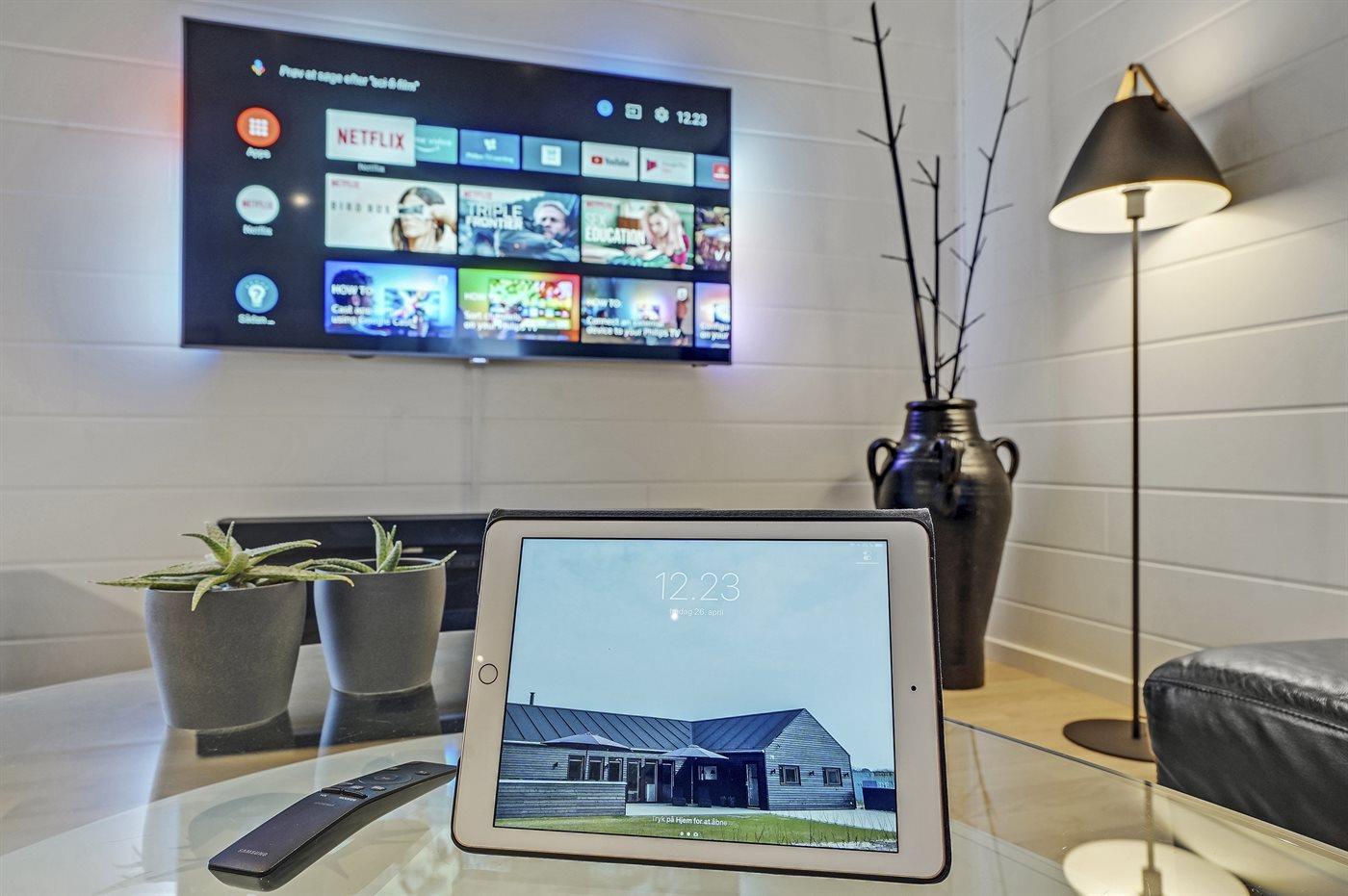 I ferieboligens smart TV er der er mindst 4 danske kanaler, mindst 4 svenske kanaler, mindst 4 norske kanaler, mindst 4 tyske kanaler og mindst 4 engelske kanaler. Der er trådløst internet til rådighed med fiber som er utroligt stabilt og dækkende på hele ferieboligens indendørs som udendørs arealer.