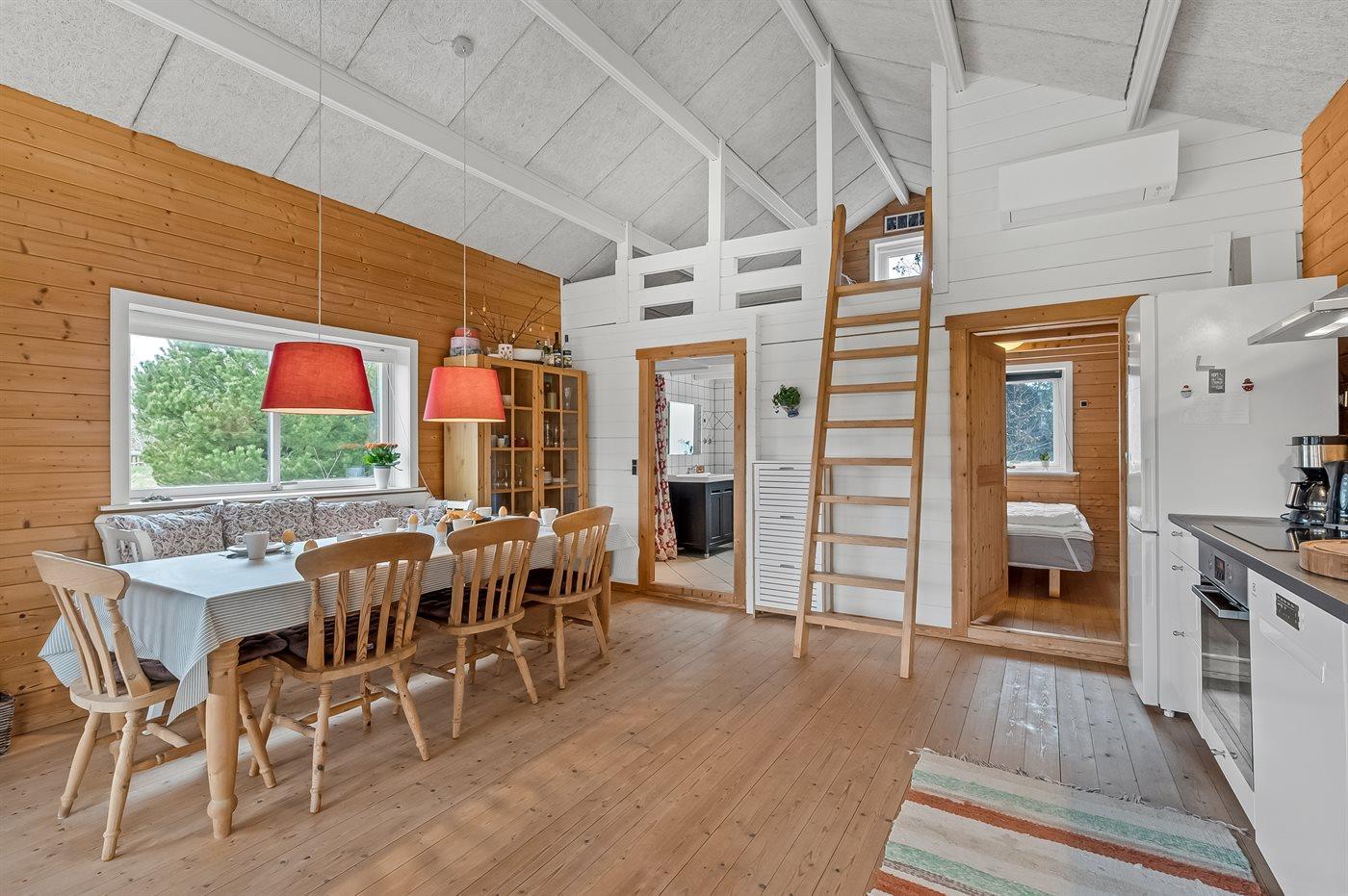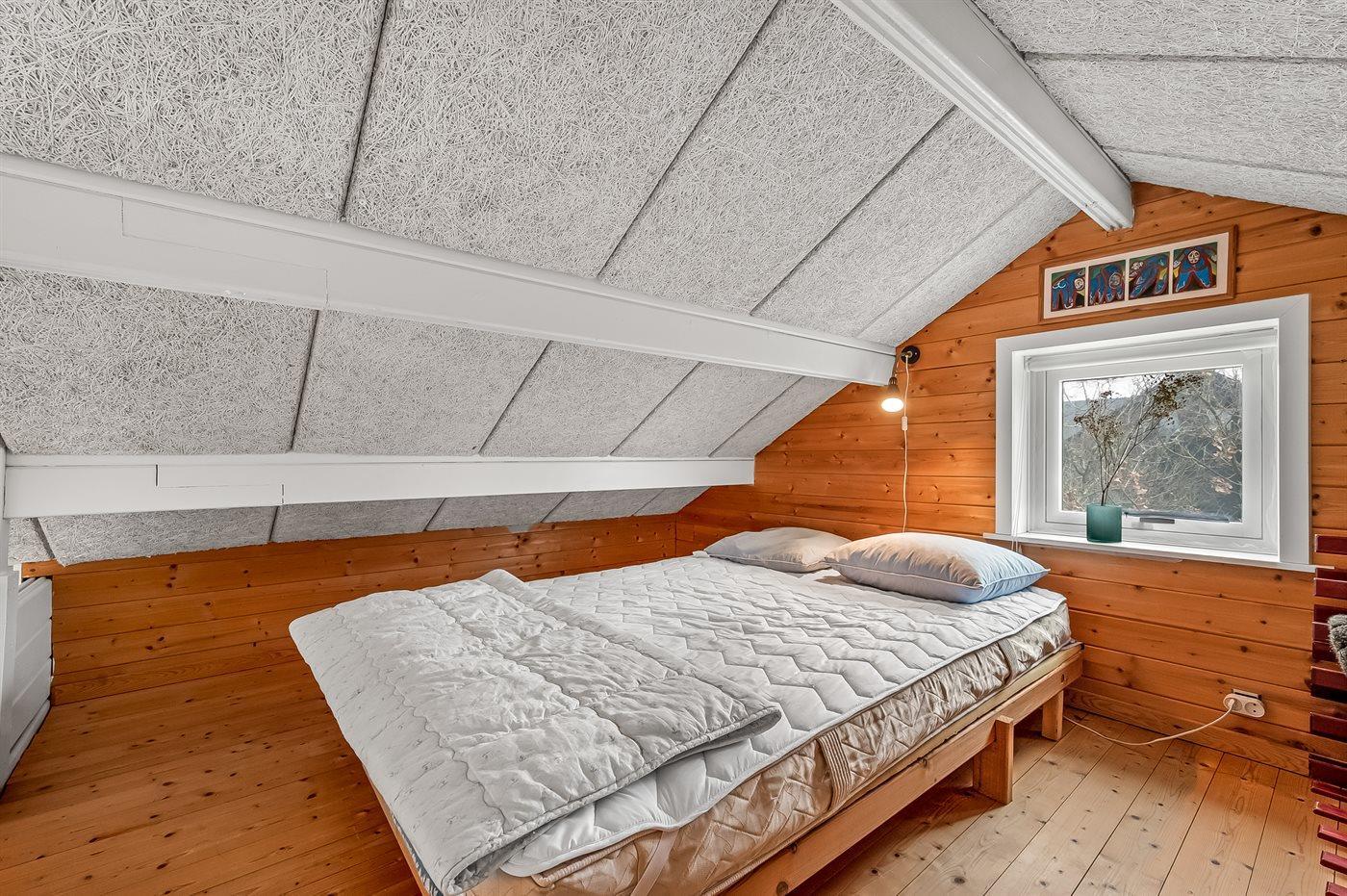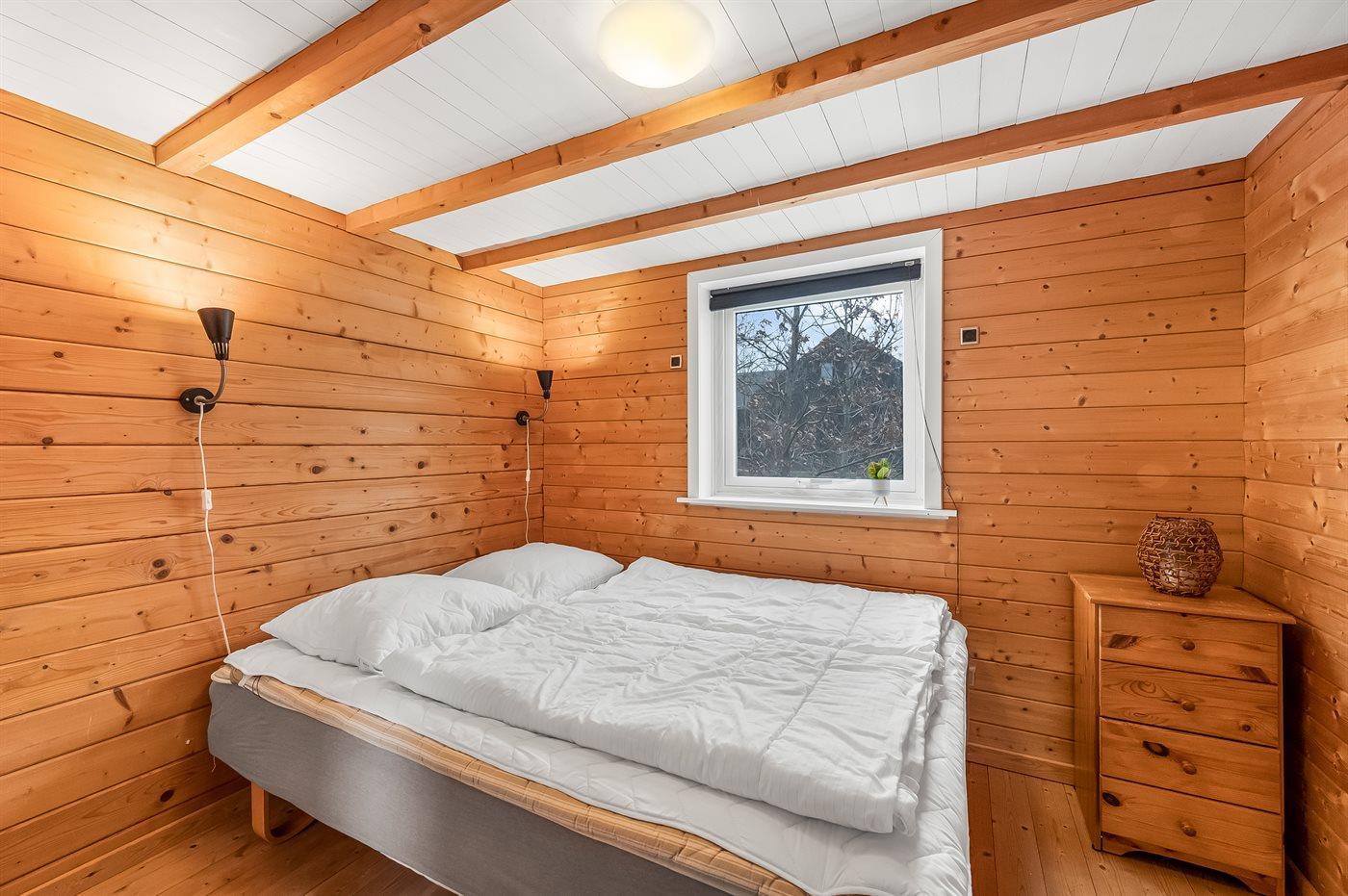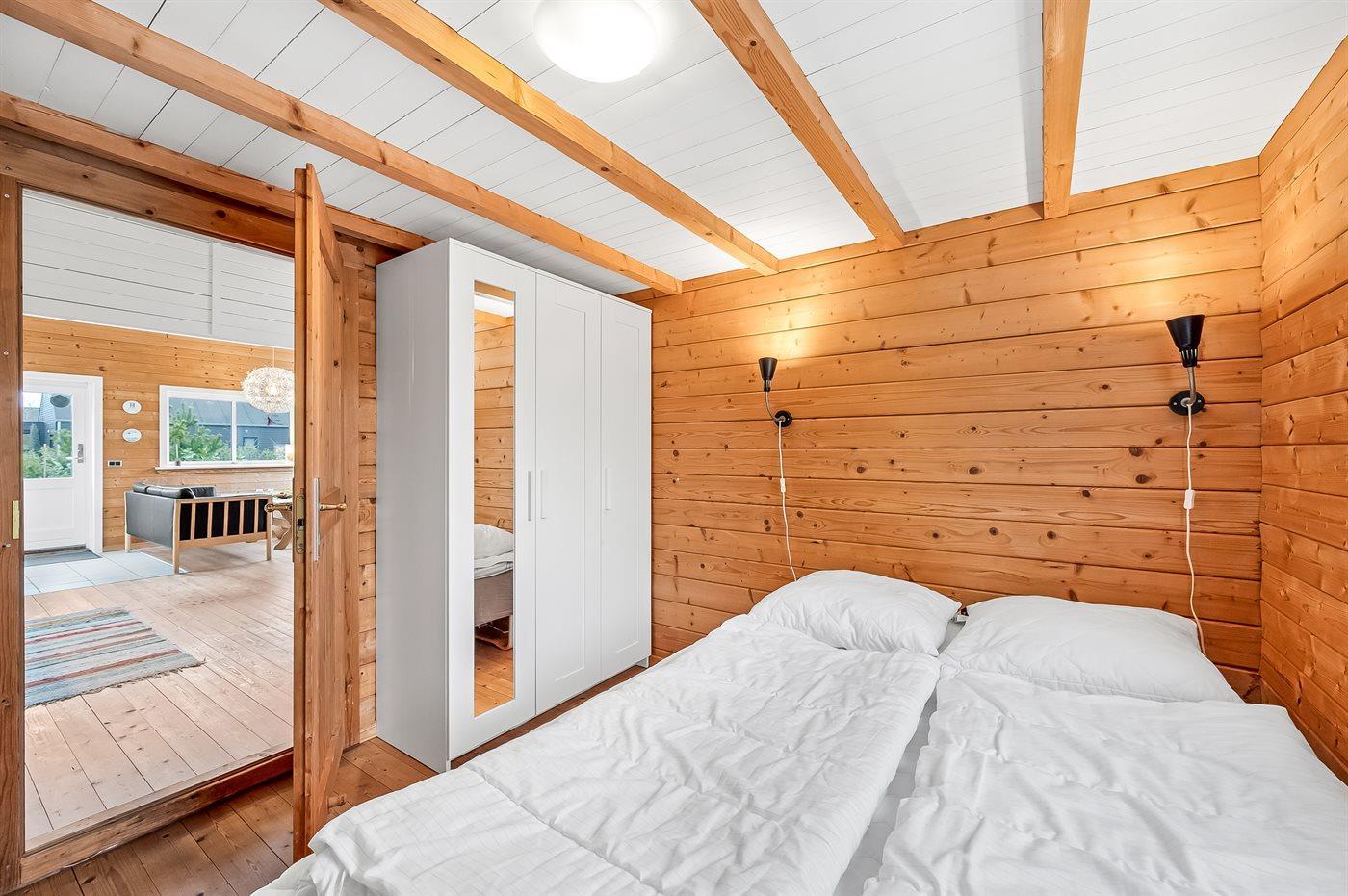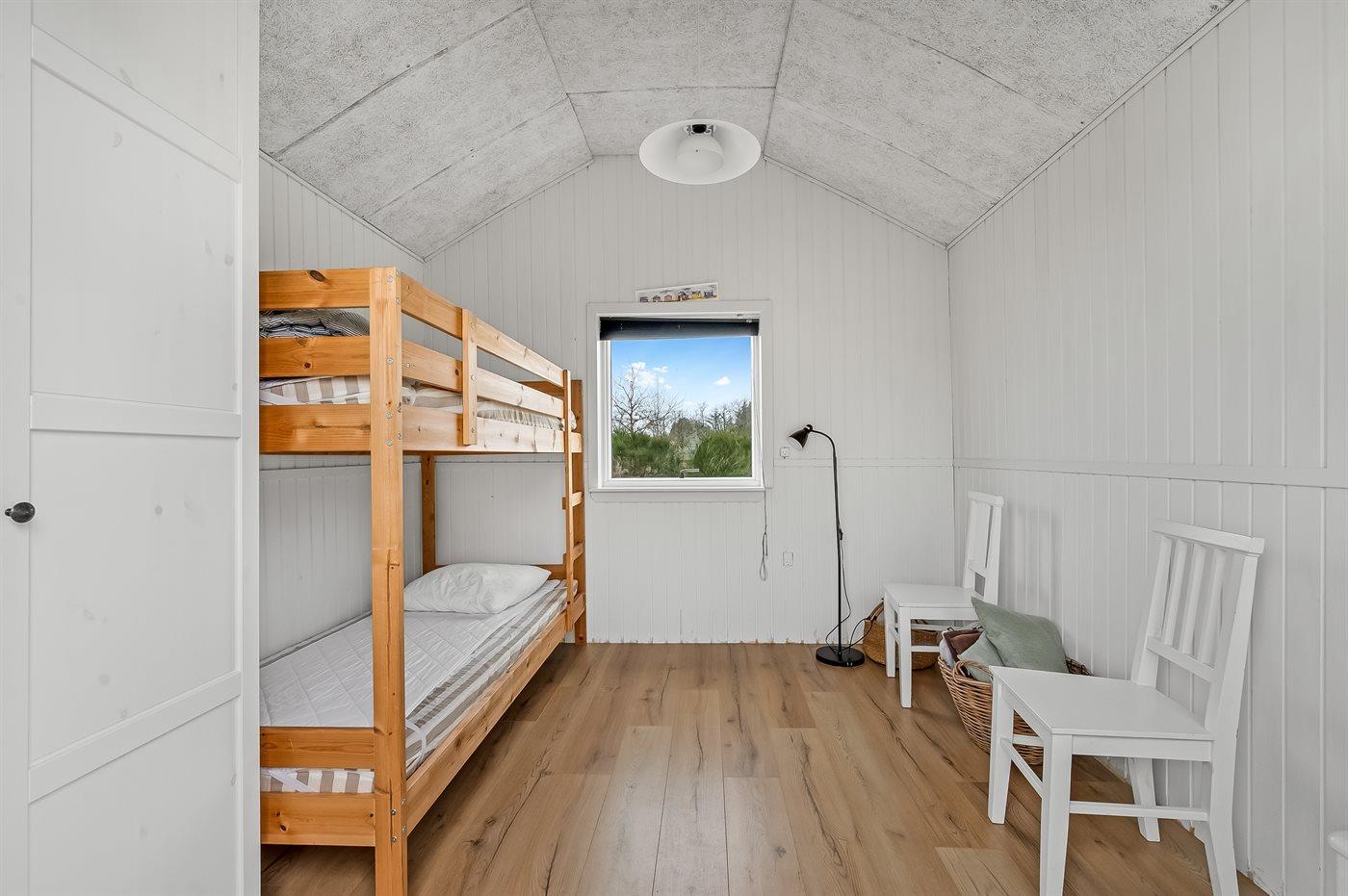 Der er i alt 1 soveværelse. Sovepladserne fordeler sig på: 4 sovepladser i dobbeltsenge. 2 sovepladser i køjeseng.- 2 af disse sovepladser befinder sig på husets hems og 2 i anneks.