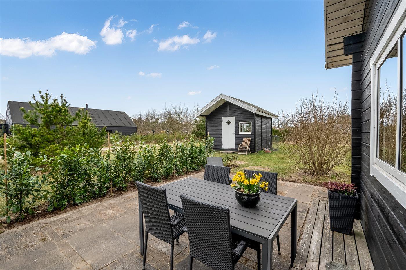 Hyggeligt sommerhus fra 2012 tæt på Ringkøbing Fjord med terrasse og energibesparende varmepumpe.