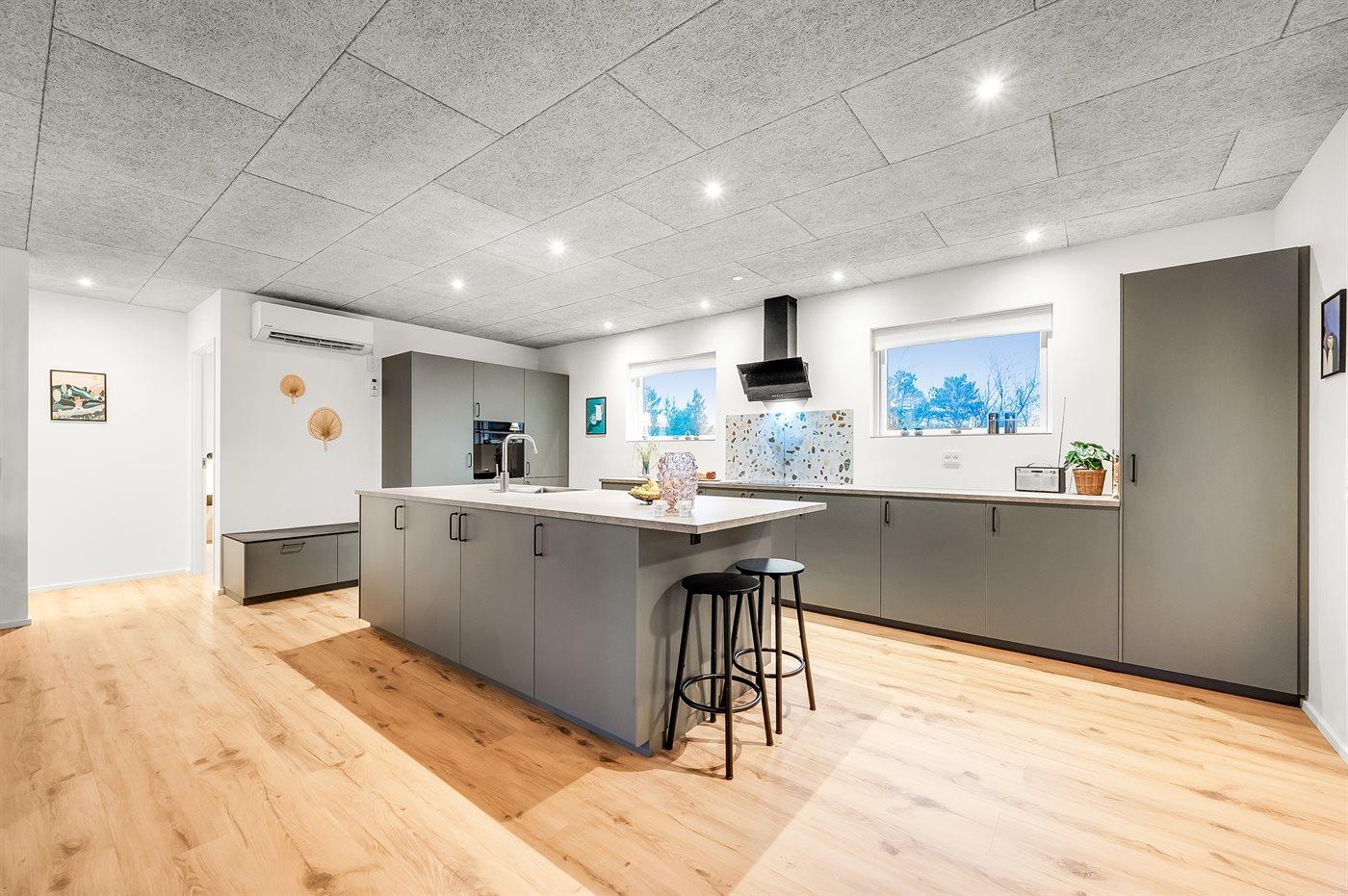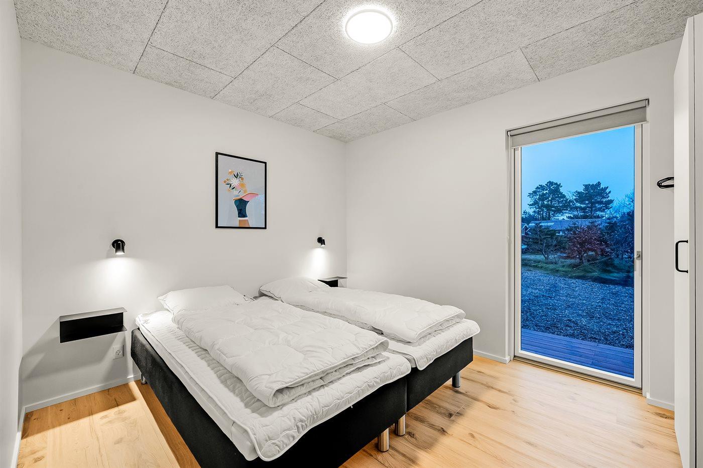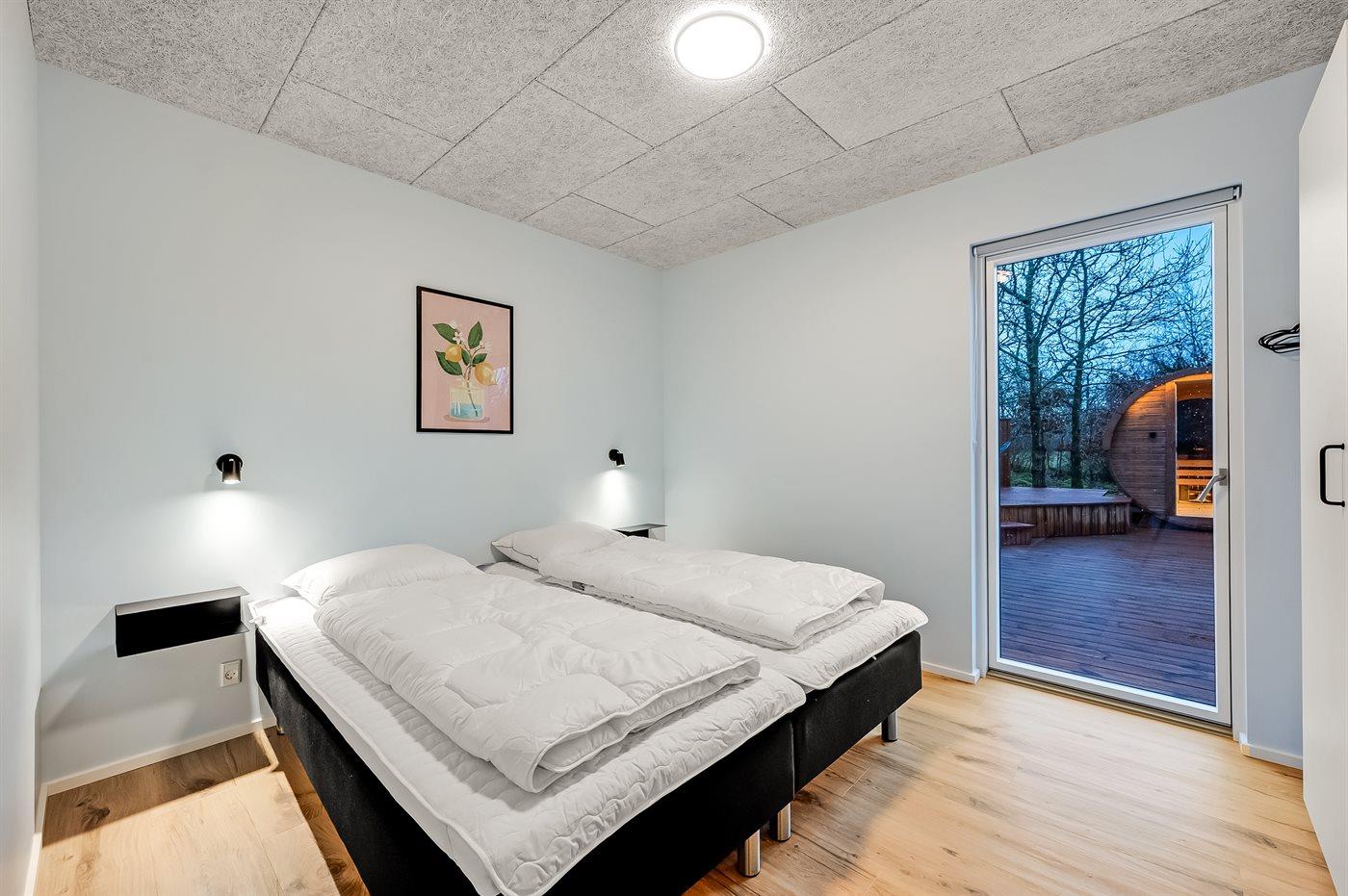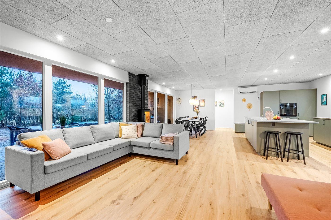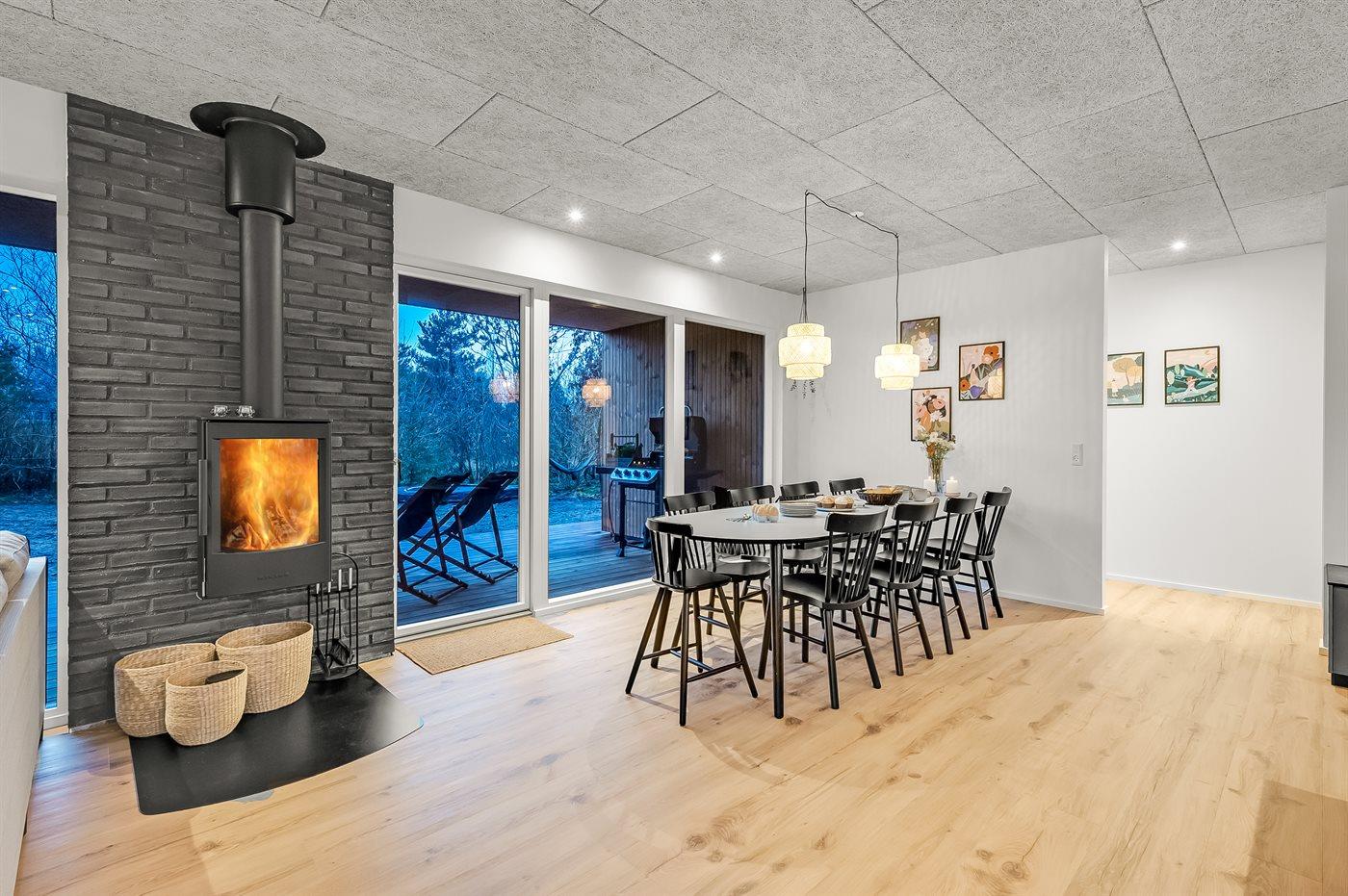 Forkæl jer selv med en afslappende pause fra hverdagen sammen med familie eller venner i dette stilfulde og indbydende sommerhus. Store gulv-til-loft vinduer lukker masser af dagslys ind og skaber en hyggelig atmosfære, der understreges af de elegante møbler. Den hyggelige brændeovn sætter prikken over i’et. Det åbne opholdsrum med et rummeligt, veludstyret køkken samt spise- og opholdsområde indbyder til afslapning og hyggeligt samvær.