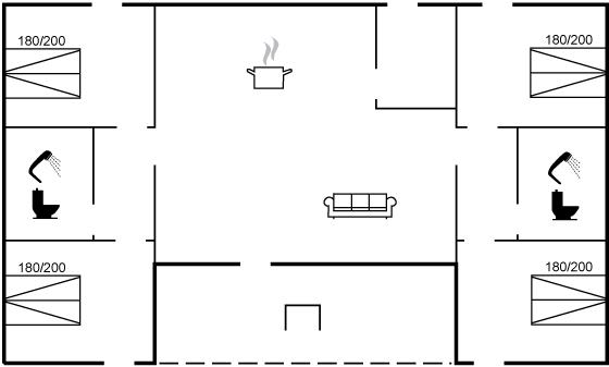 Der er i alt 4 soveværelser. Sovepladserne fordeler sig på: 8 sovepladser i dobbeltsenge.