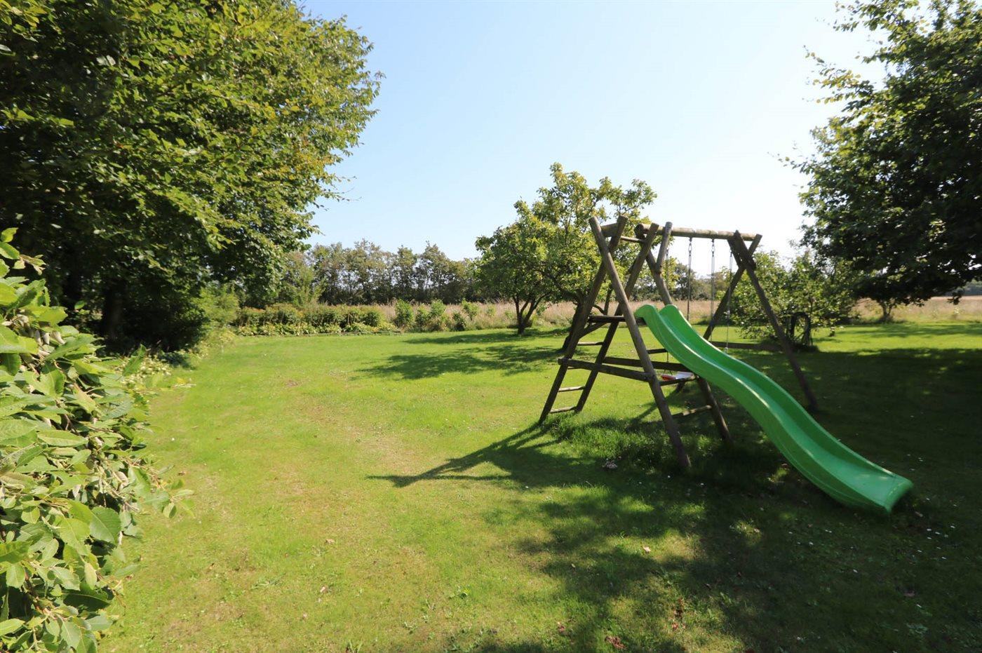 Ferieboligen er beliggende på en 5000 m² stor naturgrund. Der er 1300 m til fjorden. Nærmeste forretning er beliggende i en afstand af 5200 m. Til ferieboligen hører åbent terrasseareal. Desuden er der overdækket terrasse. Gynge. Rutchebane. Der er installeret stik til opladning af elbil. Type 2 stik. Med 11 kW ladeeffekt. Parkering ved ferieboligen.