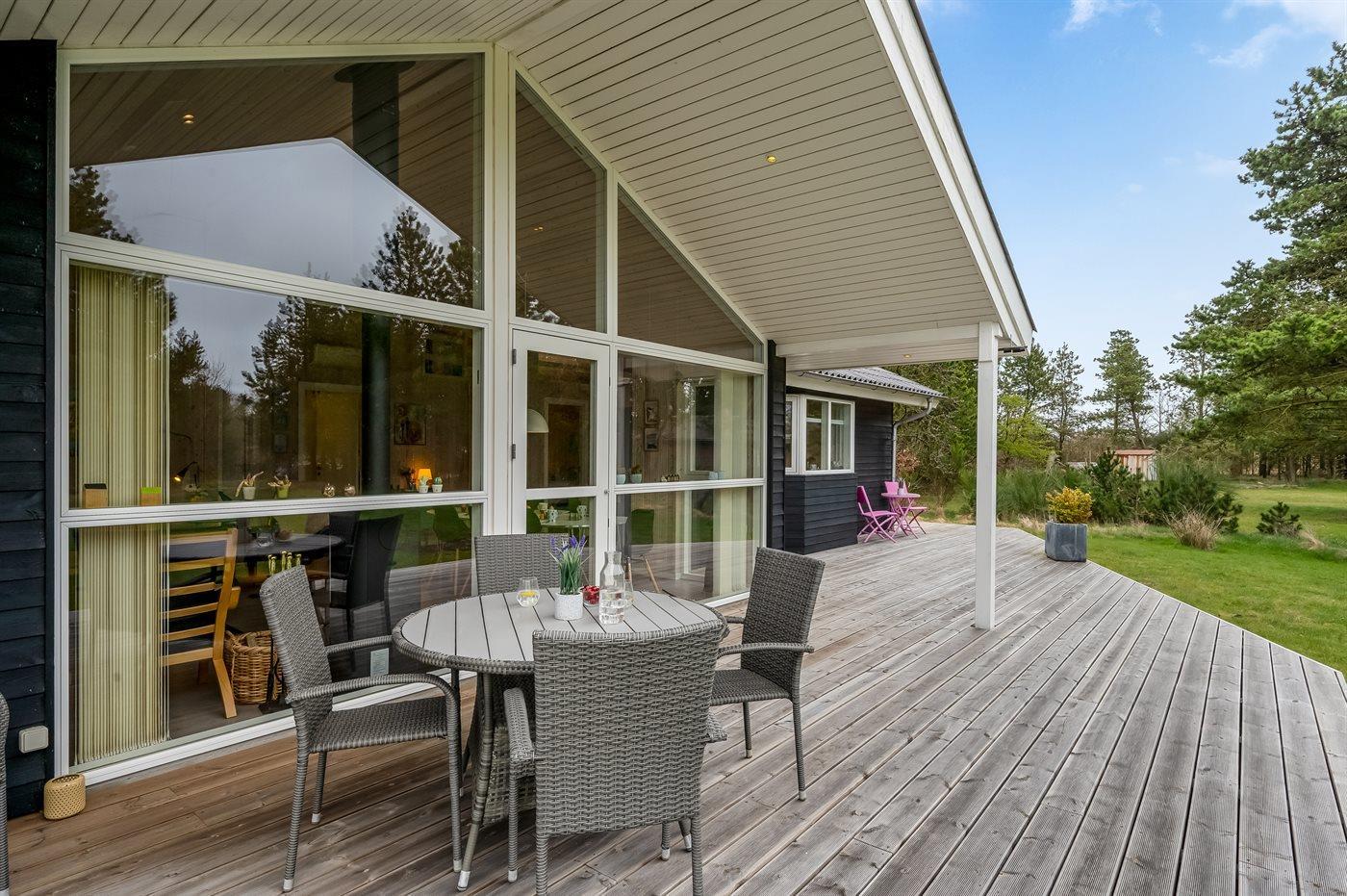 Ferieboligen er beliggende på en 1925 m² stor naturgrund. Der er 600 m til fjorden. Nærmeste forretning er beliggende i en afstand af 5000 m. Til ferieboligen hører åbent terrasseareal. Desuden er der overdækket terrasse. Bålsted. Parkering ved ferieboligen.