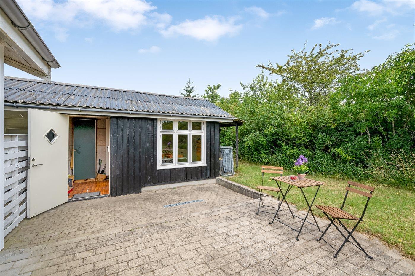 Ferieboligen er beliggende på en 1008 m² stor naturgrund. Der er 500 m til fjorden. Nærmeste forretning er beliggende i en afstand af 6000 m. Til ferieboligen hører åbent terrasseareal. Der ligger en legeplads i en afstand af 300 m. Bålsted. Der er carport til rådighed. Parkering ved ferieboligen.