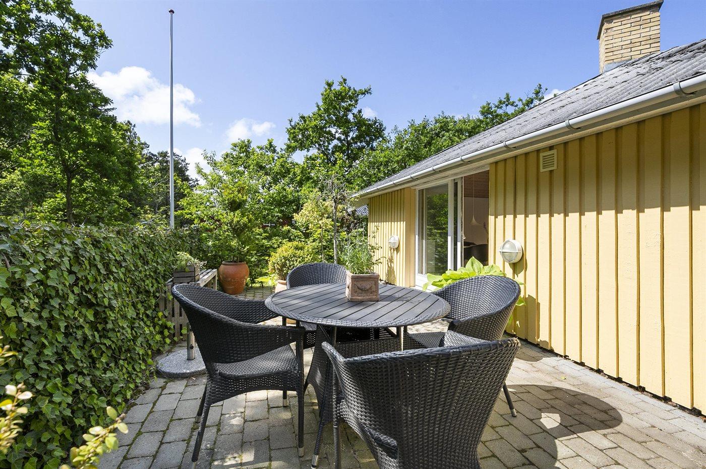 Huset har et fint orangeri til at nyde en kop i og ikke mindst et dejligt terrasseområde. Huset fremstår meget pænt og er en ideel ramme om en hyggelig familieferie til Danmark.