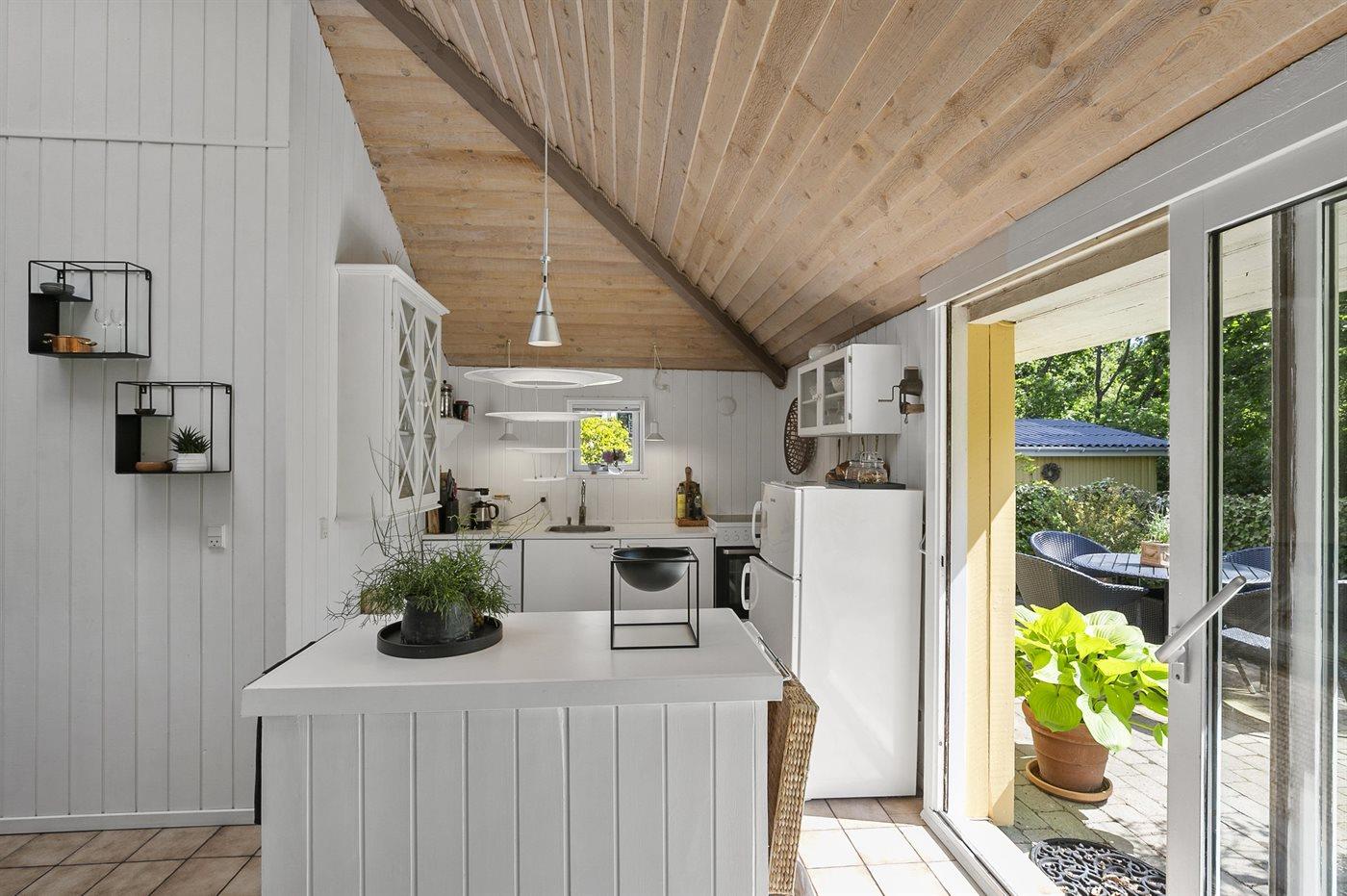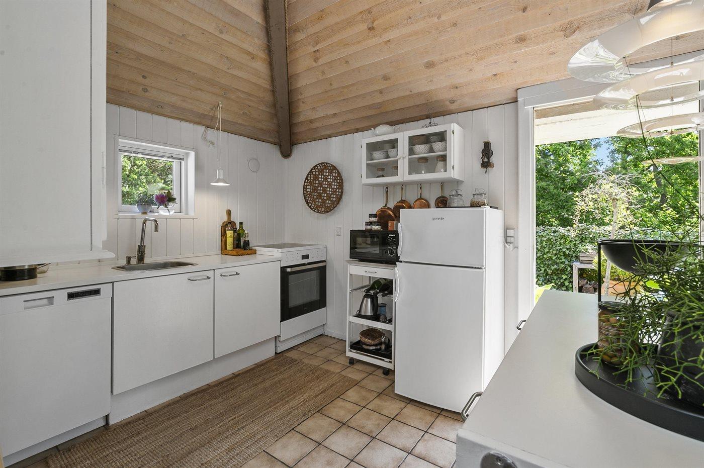 Køkkenet er udstyret med 1 køleskab. Der er 4 induktionskogeplader, varmluftovn, mikrobølgeovn, Airfryer samt opvaskemaskine.
