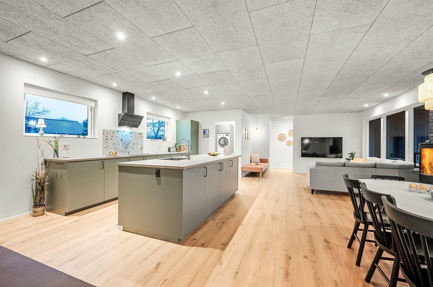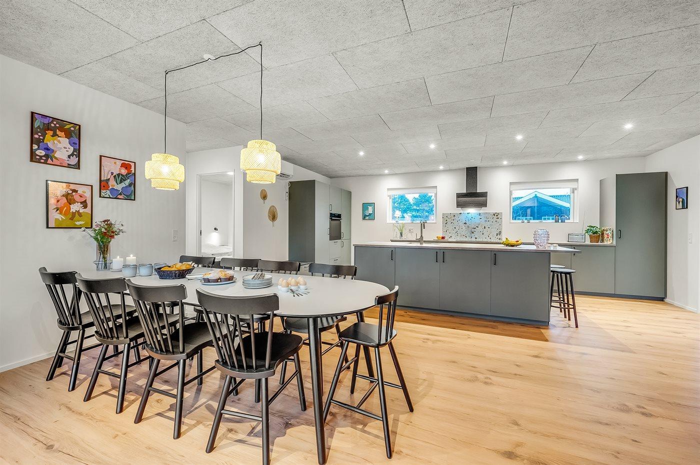Køkkenet er udstyret med 1 køleskab. Der er 4 induktionskogeplader, varmluftovn, mikrobølgeovn samt opvaskemaskine.