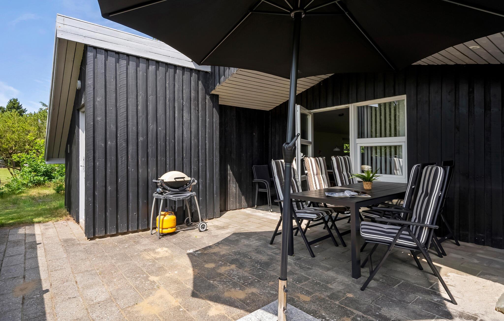 Stilfuldt feriehus ved Ringkøbing Fjord med moderne faciliteter og stor have til afslapning.