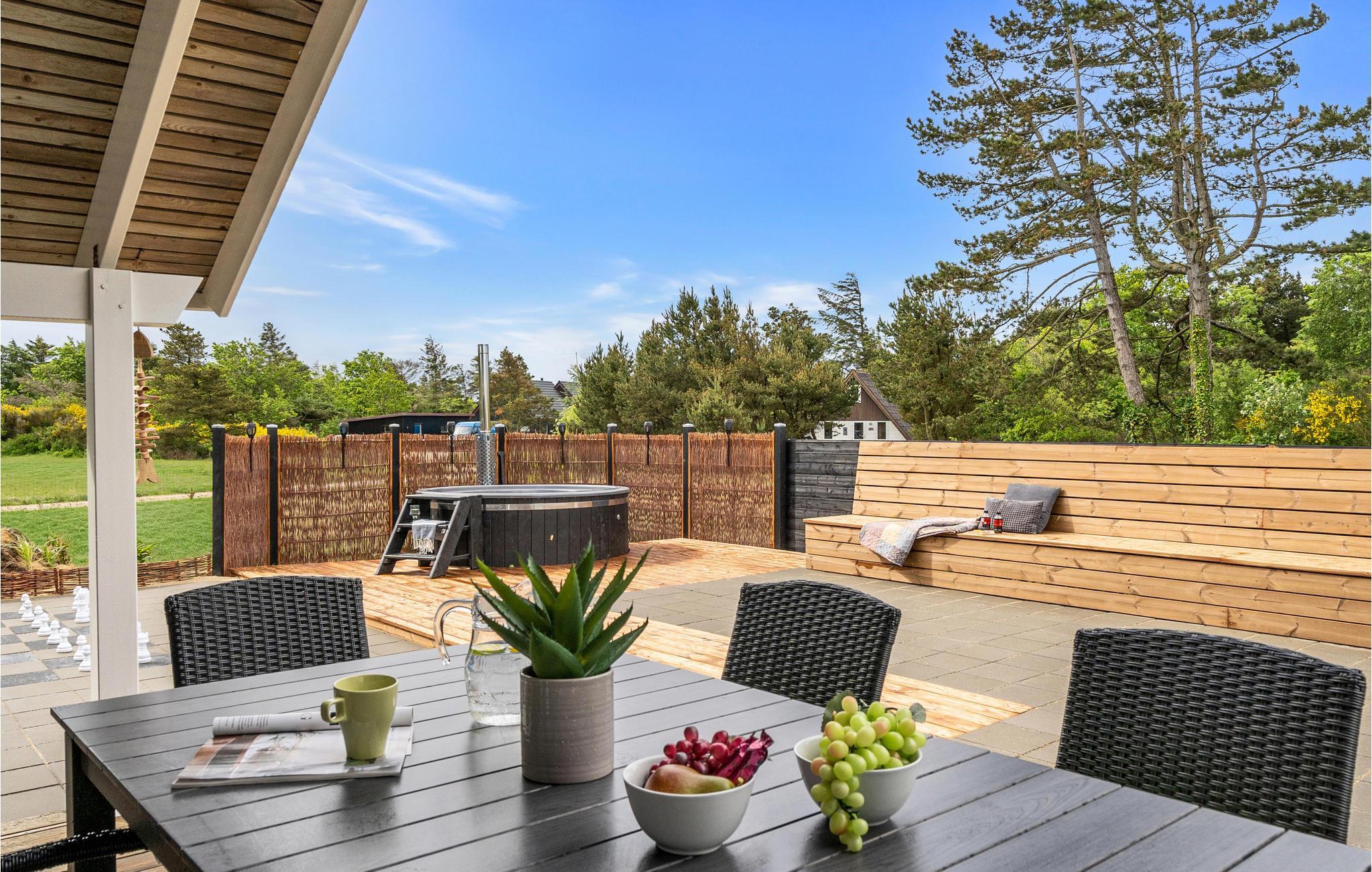 Dette charmerende, lyse feriehus ligger kun 100 m fra Ringkøbing Fjord og ca. 20 minutters kørsel fra Vesterhavet. Her kan I tilbringe en afslappende ferie sammen hele familien - jeres hund inkluderet. Huset byder på lyse, veludstyrede værelser og mange hyggekroge både inde og ude. Glæd jer til at benytte wellness-faciliteterne til rendyrket ferieafslapning og til at nyde de milde sommeraftener på terrassen.