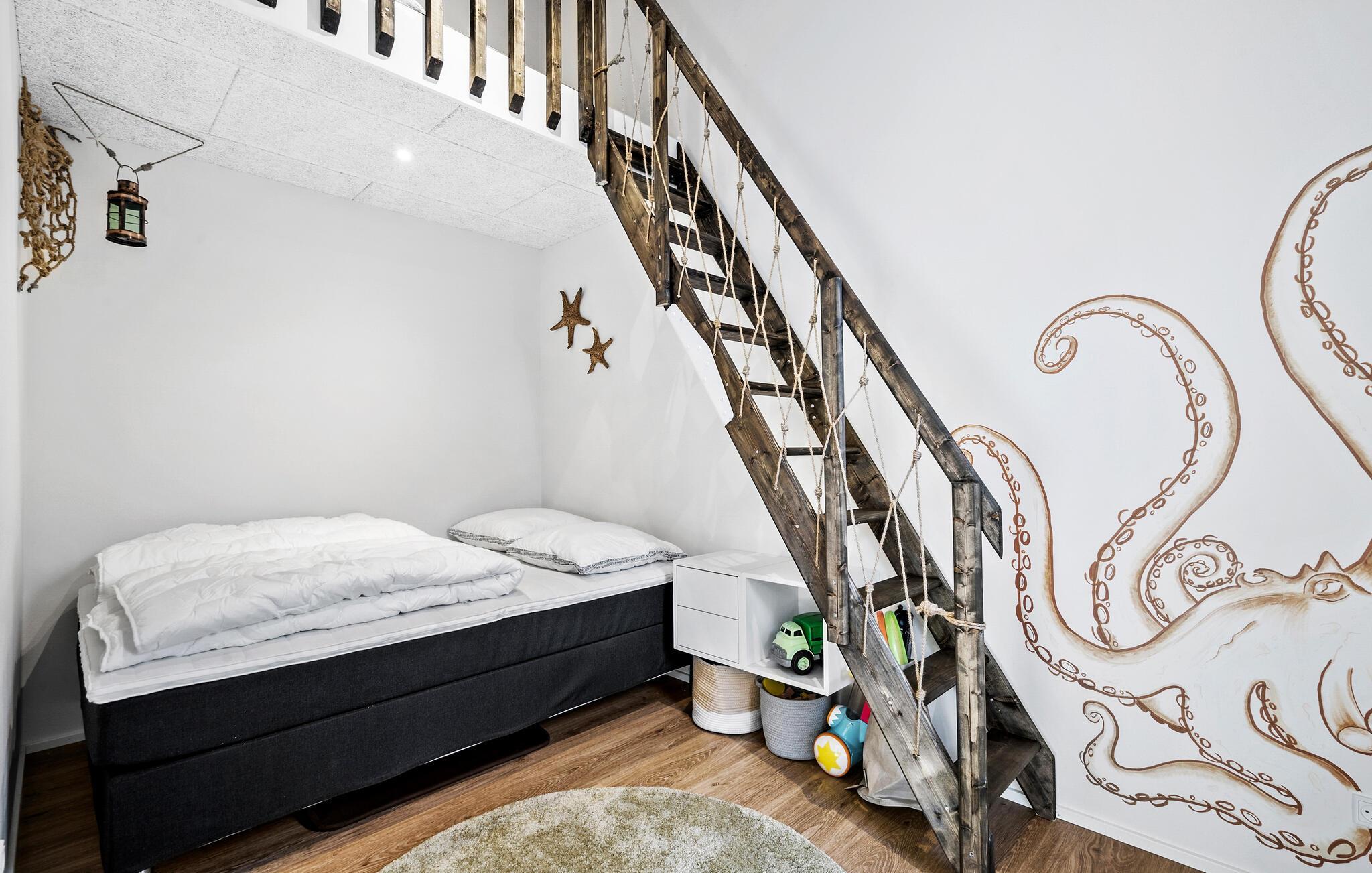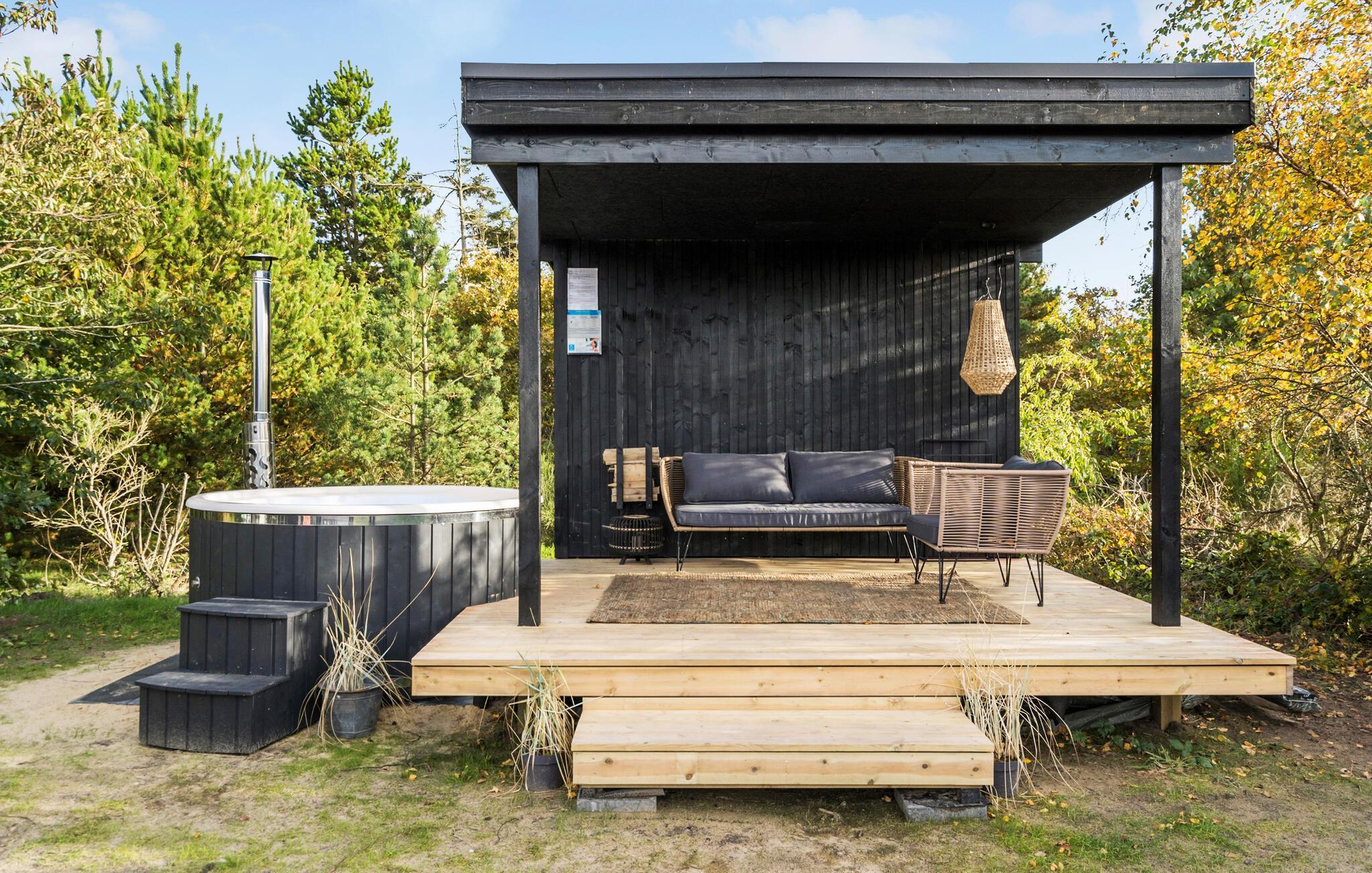 Start solrige dage med en hyggelig morgenmad på terrassen og afslut aftenen med en grillfest under åben himmel. Et særligt højdepunkt er det finske træbad, som giver jer ren afslapning. Ved siden af inviterer den lille overdækkede terrasse også til afslapning. I haven venter der jer desuden et bålsted, som inviterer til hyggelige aftener med snobrød og skumfiduser, en sjov aktivitet for hele familien. Talrige legeredskaber sørger for underholdning til de yngste gæster.