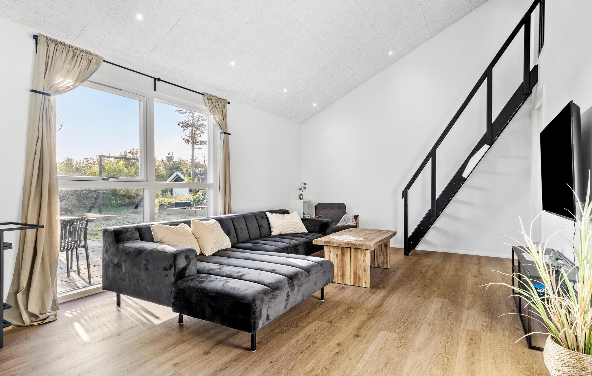 Kun en kort afstand fra den idylliske Ringkøbing Fjord, nær Stauning, ligger dette stilfulde feriehus. Den rummelige, lyse opholdsstue byder på en behagelig sofa, ideel til afslappede filmaftener eller rolige stunder med en bog. I det elegante køkken kan I sammen trylle kulinariske kreationer frem, og ved det store spisebord nyder I ikke kun måltider, men også hyggelige spilleaftener med familien.