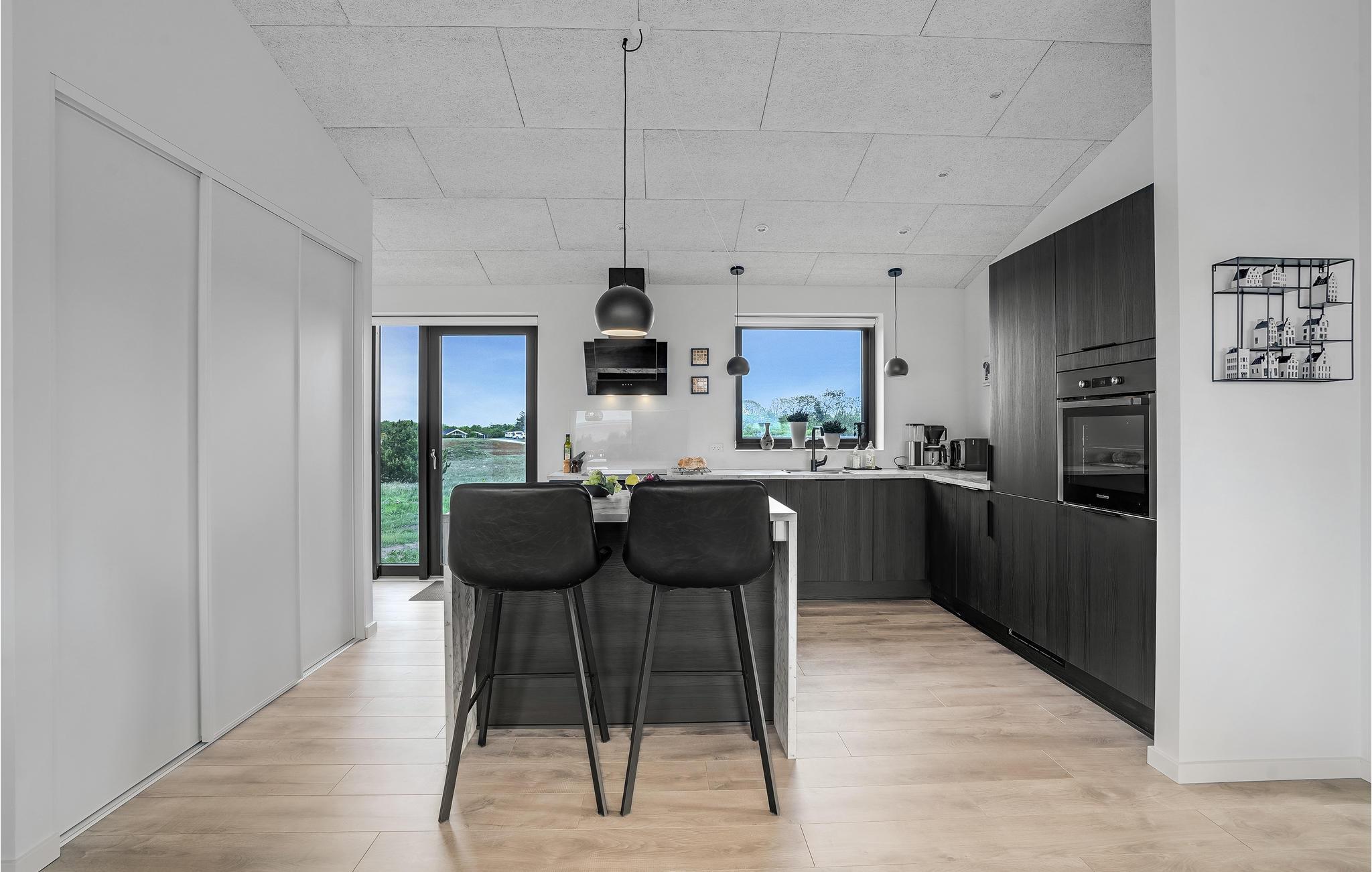 Der er lagt op til nogle skønne dage, hvor I kan komme helt ned i gear og nyde den stille natur ved Ringkøbing Fjord. Her får I den optimale ramme om feriedagene i form af dette indbydende hus, som er lækkert og stilfuldt indrettet i rolige kontrastfarver. Nyd udsigten til det smukke, flade landskab og havet gennem de store vinduespartier. Når solen er fremme, kan I rykke selskabet ud på den åbne terrasse og suge til jer af de flotte omgivelser, mens griller eller lader børnene lege.