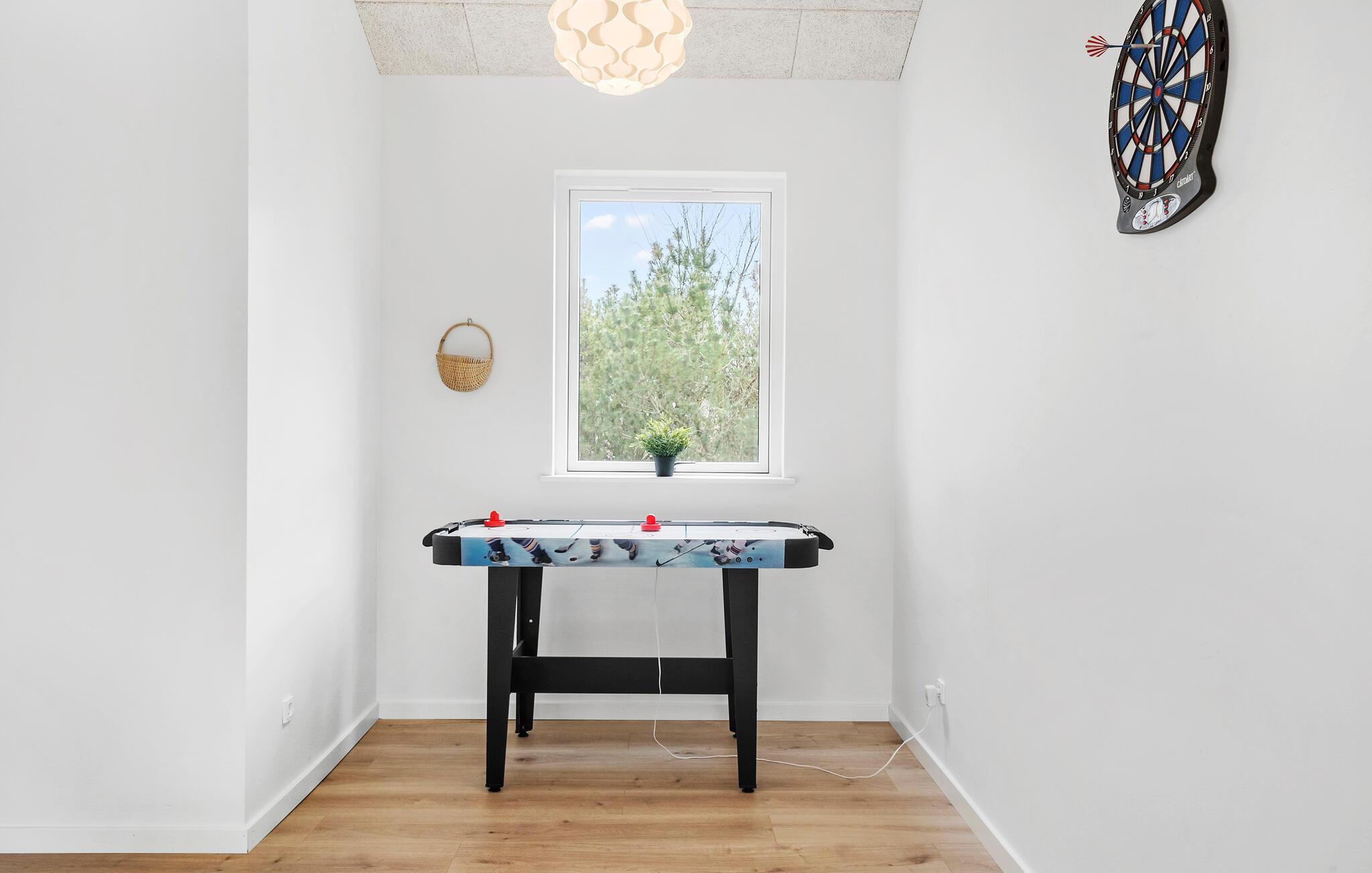 Rejs til Vestjylland med den udvidede familie eller en større venneflok og glæd jer til dette fremragende feriehus, hvor I får alt, I kunne drømme om til en ferie med sjov for alle aldre. Huset byder på mange kvadratmeter og en moderne indretning med kvalitet over hele linjen. Prikken over i'et er dog pool-afdelingen. På dage med gråvejr kan børnene plaske rundt og brænde energi af i poolen, mens de voksne finder sig godt til rette i spabadet eller sveder igennem i saunaen. Efter en lækker aftensmad kan I udfordre hinanden til dueller med dart, airhockey eller ved pool-bordet, inden I runder af med en god film i stuen.