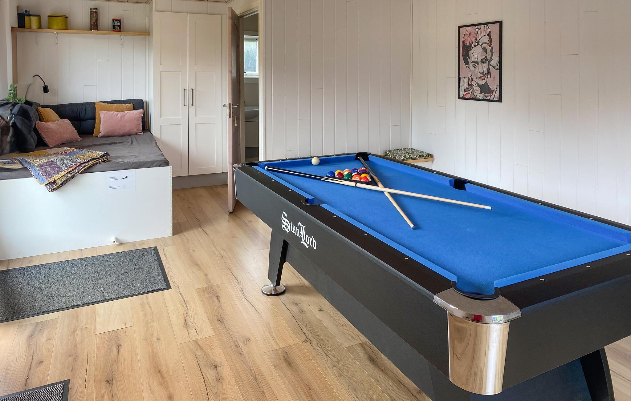 Velkommen til dette skønne sommerhus ved Ringkøbing Fjord. I den store opholdsstue med masser af naturligt lys og masser af komfortable siddepladser, kan I holde filmaftener med lækre snacksskåle og dyner i sofaen. I kan også hive et brætspil frem og samle jer om spisebordet, eller dyste mod hinanden i billiard eller dart. Når sulten nærmer sig, kan I lave mad i køkkenet. Handl ind til den store fællesspisning, fyr op for grillen på terrassen og lav mad sammen. Efter maden kan I hoppe en tur i vildmarksbadet og nyde den mørke sommerhimmel. Slut aftenen af med bål og grillede skumfiduser i haven.