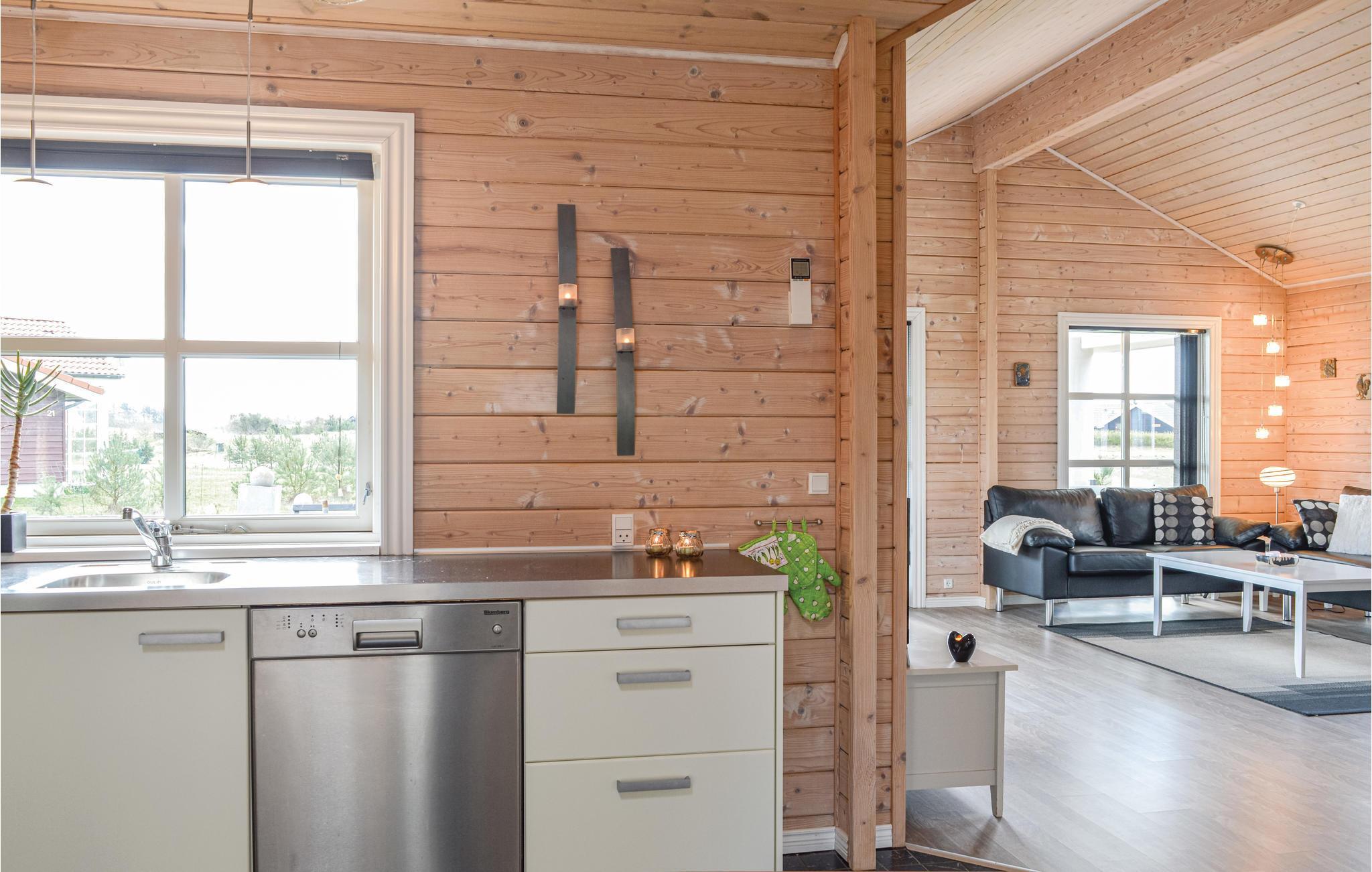 Dette flotte og indbydende sommerhus ligger tæt på Ringkøbing Fjord i et dejligt, smukt naturområde. Huset har to gode, rummelige soveværelser med en dobbeltseng samt en hems med to madrasser og tv. Det pæne, lyse køkken ligger i åben forbindelse til stuen så her er god mulighed for at hygge om madlavningen, mens andre fra familien sidder i sofaen og spiller spil eller andet. Hele stueområdet er åben helt til kip, hvilket giver et fantastisk dejligt åbent og lyst rum. Der er adgang til terrassen fra stuen, og her er rig mulighed for at sidde og få tanket ny energi op.