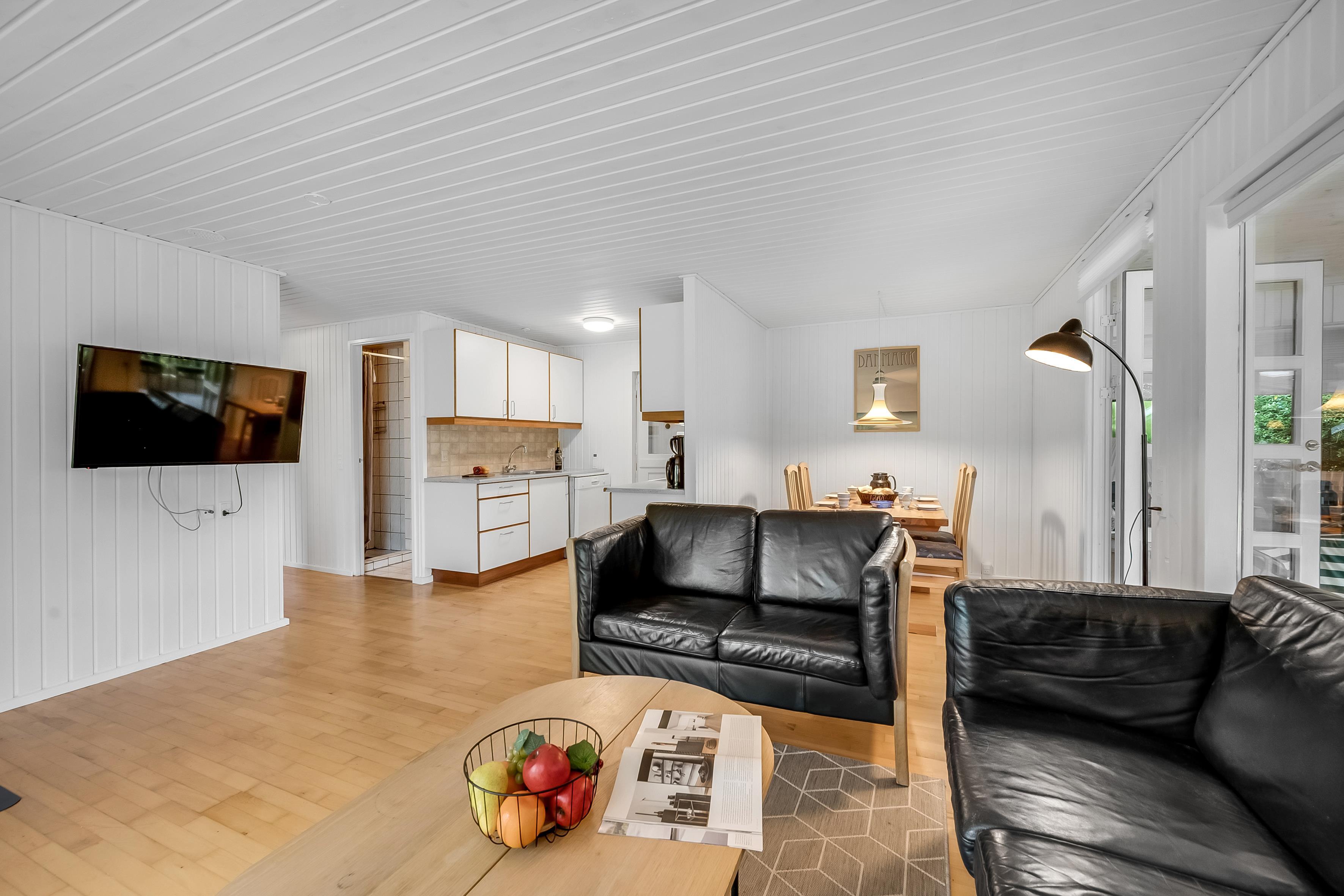 Sommerhuset har to soveværelser med dobbeltsenge og et anneks med to enkeltsenge, hvilket gør det ideelt for familier eller mindre grupper. Der er et moderne badeværelse med gulvvarme samt vaskemaskine for ekstra komfort. Udover de hyggelige indendørsarealer finder du en stor udestue og en overdækket terrasse, hvor der kan tilbringes mange afslappende timer udendørs. Den rummelige sauna, der har plads til op til 6 personer, er perfekt til at varme op efter en aktiv dag ved fjorden.