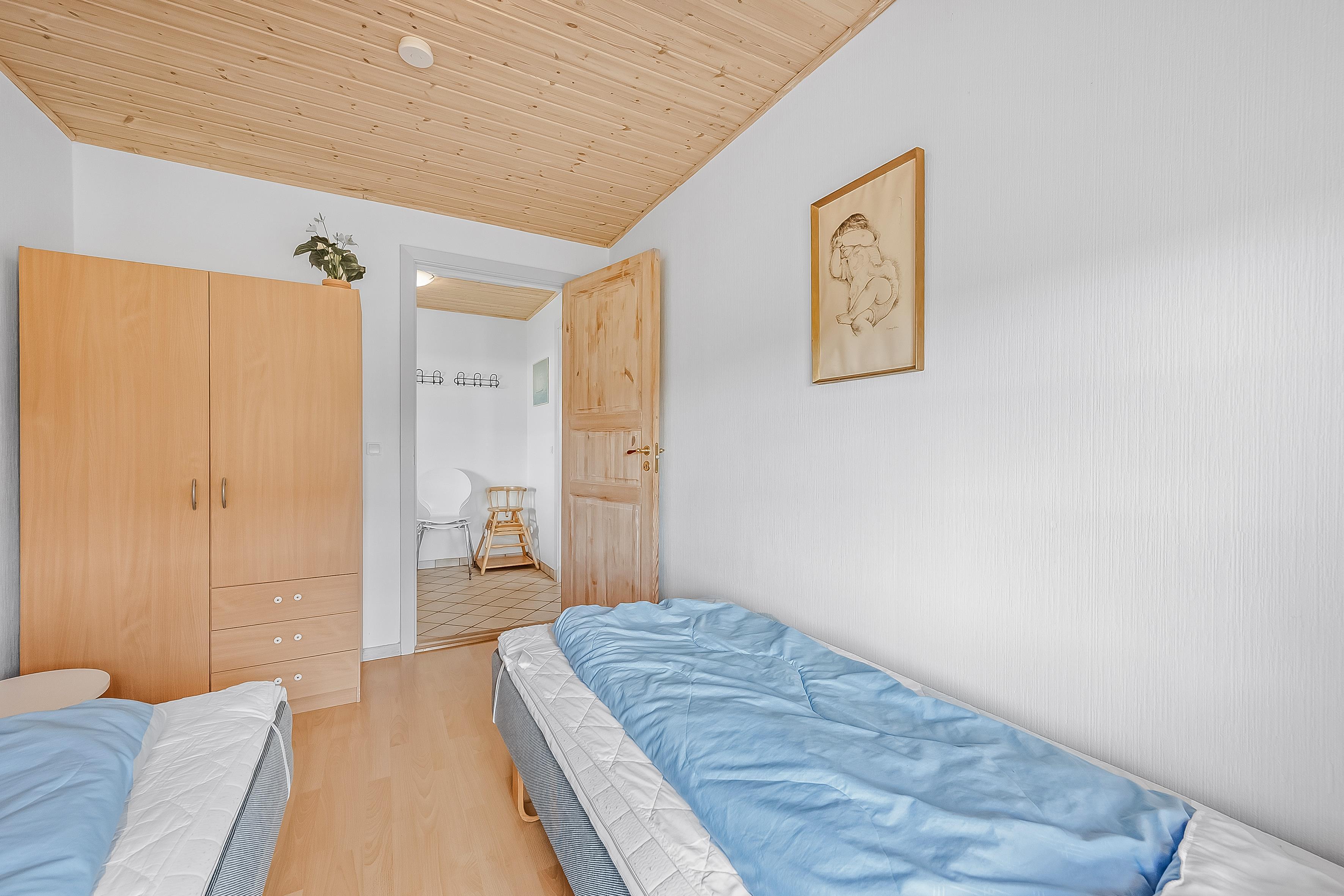 Boligen har tre soveværelser, hvoraf det første og andet har dobbeltsenge, mens det tredje har to enkeltsenge. Dette gør det ideelt for familier eller grupper, der ønsker at dele opholdet. Der er også en barneseng og barnestol til rådighed, så de mindste gæster er godt taget hånd om.
