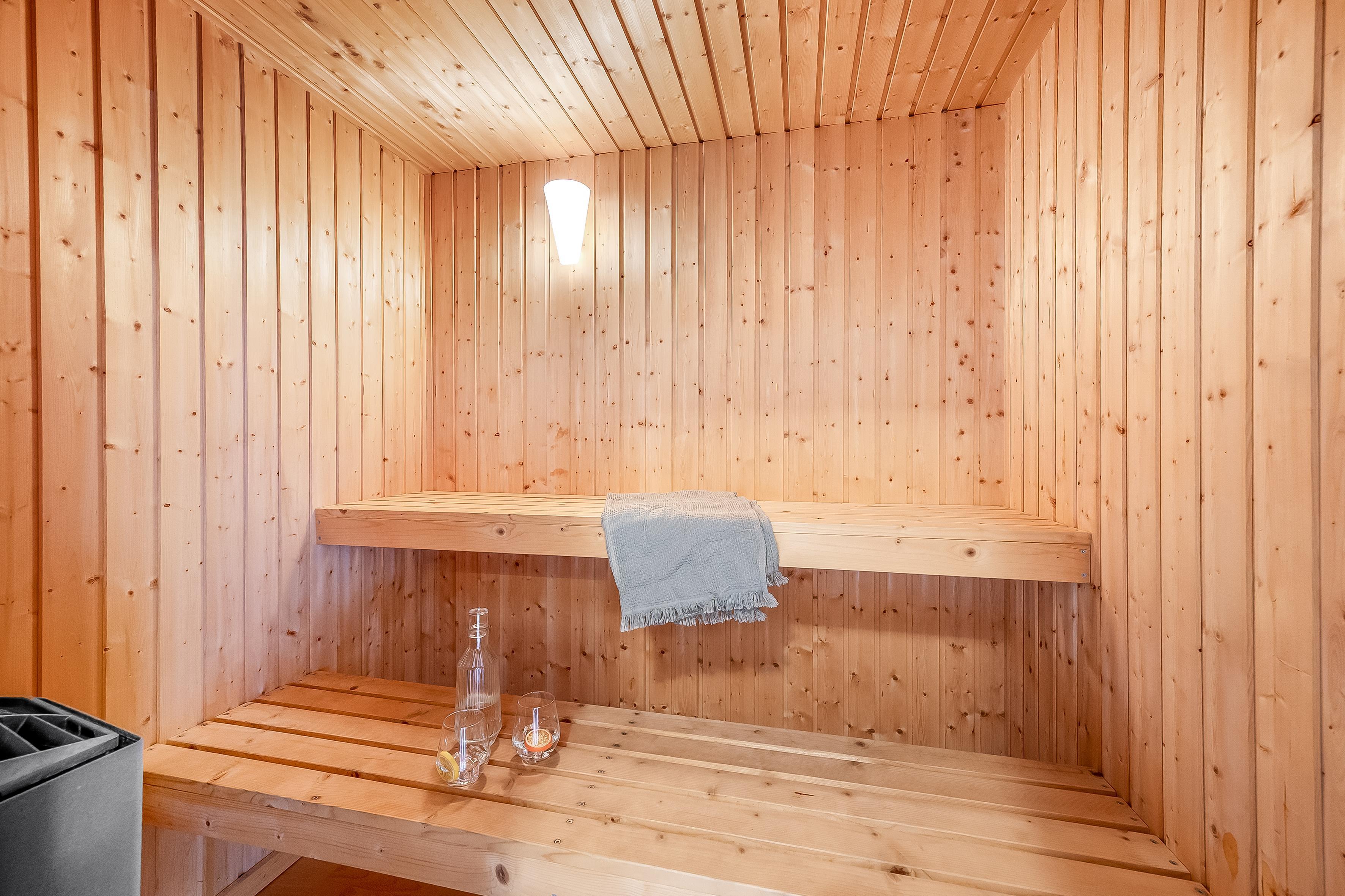 Udendørsområdet er lige så imponerende som indendørs. Den overdækkede balkon giver mulighed for at nyde de lange sommeraftener, mens du griller og beundrer udsigten. På grunden ud mod fjorden, finder du også en udesauna og et vildmarksbad, der kan rumme op til 6 personer – perfekt til afslapning efter en dag med aktiviteter. Udebruseren er en dejlig tilføjelse, når du kommer hjem fra en vandretur ved fjorden, som ligger blot 100 meter væk.
